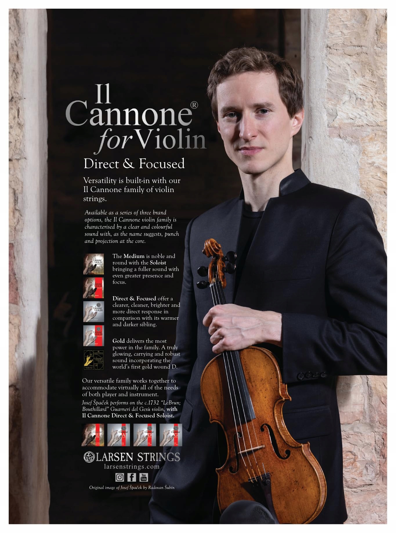 Larsen violin strings Il CANNONE set medium Direct&Focused - Tensions: Medium 22,6 kg/49.20 lbs Soloist 24.5 kg/53.9 lbs