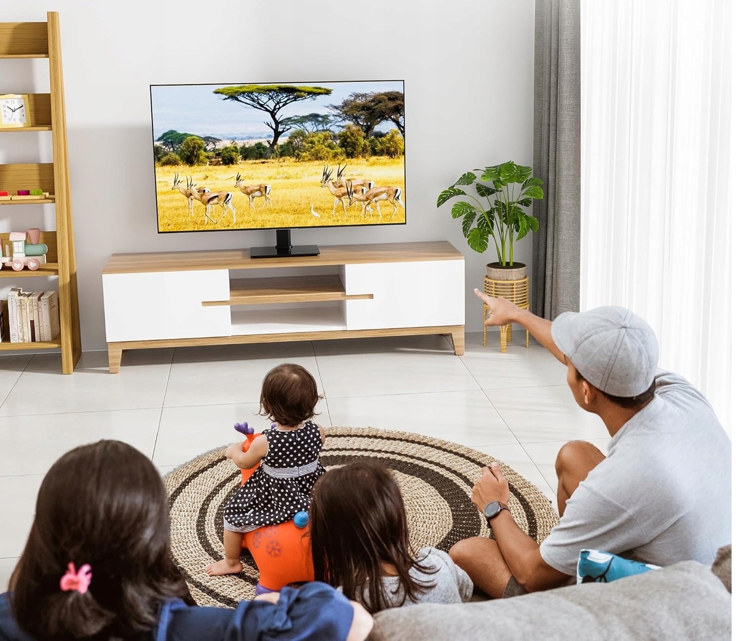 Płyta naszego stojaka na telewizor może obracać się o +/- 50° w lewo i w prawo (maksymalny kąt obrotu zależy od rozmiaru telewizora), łatwo dostosowując Twoje wrażenia podczas oglądania i posiada trzy poziomy regulacji wysokości, aby uzyskać najlepsze wrażenia podczas oglądania.