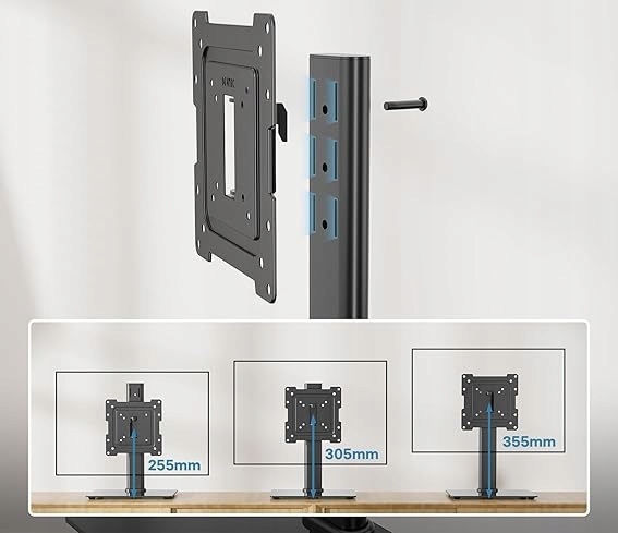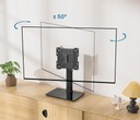 Regulacja obrotu i wysokości: nasz stojak na telewizor ma trzy poziomy regulacji wysokości, każdy o 5 cm, aby uzyskać najlepsze wrażenia podczas oglądania i ma obrót o +/- 50° (maksymalny kąt obrotu zależy od rozmiaru telewizora) dla maksymalnej elastyczności oglądania.