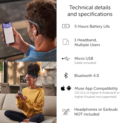 While the majority of people know meditation is beneficial, most people struggle to start a practice. Muse helps make meditation easy, tangible, and enjoyable to learn by offering a simple and accessible "work out plan" for your meditation practice, with incredible insights into your inner world. Take the guesswork out of finding calm. This new and improved meditation headband offers all the same ground breaking meditation tracking and brain sensing features as the original Muse: brain sensing headband, But now with so much more! Muse 2 features more sensors, is lighter and smaller and features more sizing flexibility than the original Muse. Through three new rich feedback options, Muse 2 features a more concrete foundation to support both beginners and experts on their meditation journey, allowing you to discover your mind-body connection through powerful, accurate real-time feedback on brain activity, heart rate, breathing, and body movements. This feedback will help guide your total meditation experience, giving you a holistic view of your practice and how to go deeper. There are multiple body systems involved with a meditation practice that need to be learned. Muse 2 features four rich feedback experiences including real-time feedback on brain activity, heart rate, breathing, and body movements. With built-in Bio signal, Inertial and peg sensors, Muse 2 is able to provide feedback on focused attention (The mind), physical relaxation (body), relaxation response (heart) and breath based cardiac control (breath). think of Muse 2 as your personal guide to a holistic meditation practice while experiencing your mind-body connection in a completely unique way. The complementary Muse meditation app has been completely redesigned, and you'll love the responsive and intuitive design, new results screens, new user dashboard, And all new educational content. Original musters will get to experience the new app improvements and have access to movement feedback, while the Muse 2 musters will unlock all 4 feedback options. New sensors offer new experiences! Feel the difference in body by building the foundation of Stillness; heart by Learning your Rhythm and finding your calm; breath by riding your breath to a deeper practice; inner harmony by combining multiple feedback centres in the body. Battery life: 8 hours charge time: 2 hours included in box: Muse 2: brain sensing headband, quick start guide, USB recharge cable