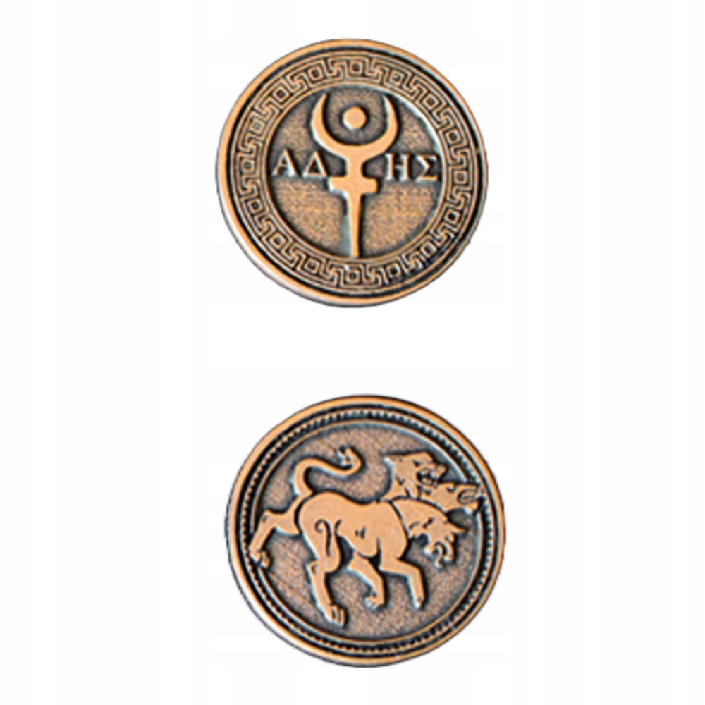 Wykonany ze stopów cynku zestaw 20 cudownych, ciężkich monet które przedstawiają motywy związane z mitologicznymi bestiami i starożytnością. Herkules musiał wykonać swe prace. Rzeczywistość odbiega jednak od podań i mitów, więc pozwól, że opowiem Ci co nieco o naturze zmagań greckiego herosa. Wszystkie zlecenia dał mu nie król, lecz jego żona Dejanira. Ta sama, którą w mitach przedstawiono jako słabą i zazdrosną. Pewnie z zemsty, bo w rzeczywistości herod-baba rządziła potulnym Heraklesem i zlecała mu sprzątanie salonu i stajni, polowanie na dziki do obiadu, zrywanie jabłek z sadu czy kupienie pieska dla ich dziecka. Potem szowinistyczni czciciele męskich wdzięków rozbuchali prace do czynów heroicznych. Ach, ci męscy mężczyźni i ich męskie męstwo. Wieczne mierzenie... włóczni. Od Parysa do Achilla. Zrozumcie wreszcie – you are Heraklenough. Cokolwiek robicie. Nie bądźcie Spartiatą, bądźcie sobą. Albo Bachusem, o! Ten to dopiero gagatek. Tańczy, pije, swawoli i błogosławi igrzyskom. Kto nie chciałby takiego życia? Ach, właśnie! Ostatnia rzecz – po wszystkich pracach i zmaganiach herosa pozostały jeno monety, których możesz użyć do gier fabularnych i LARPów.