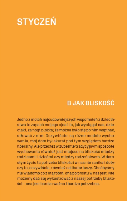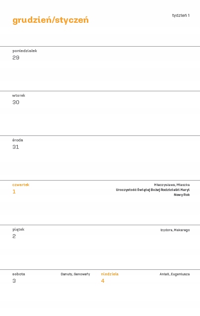 W kalendarzu znajdziesz cytaty ks. Jana na każdy tydzień roku – pełne humoru, mądrości i odwagi do życia mimo wyzwań, refleksyjne teksty – o relacjach, rodzinie, sumieniu, emocjach, uważności i nie tylko, przestrzeń na osobiste notatki, fotografie księdza Jana, które przypominają, że świętość może mieć również uśmiechniętą twarz.