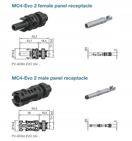 Oryginalny MC4-Evo 2 gwarantuje wysoką wydajność nawet w trudnych warunkach. Ponadto łączy w sobie najlepsze w swojej klasie funkcje złączy fotowoltaicznych DC, takie jak: