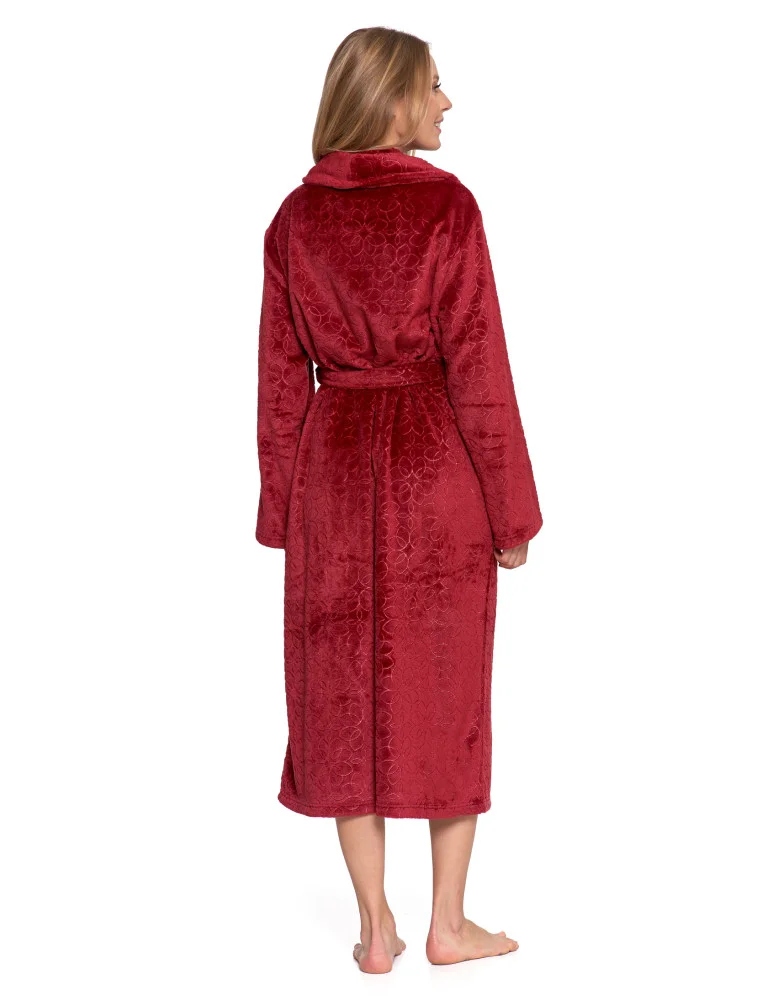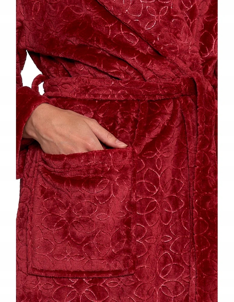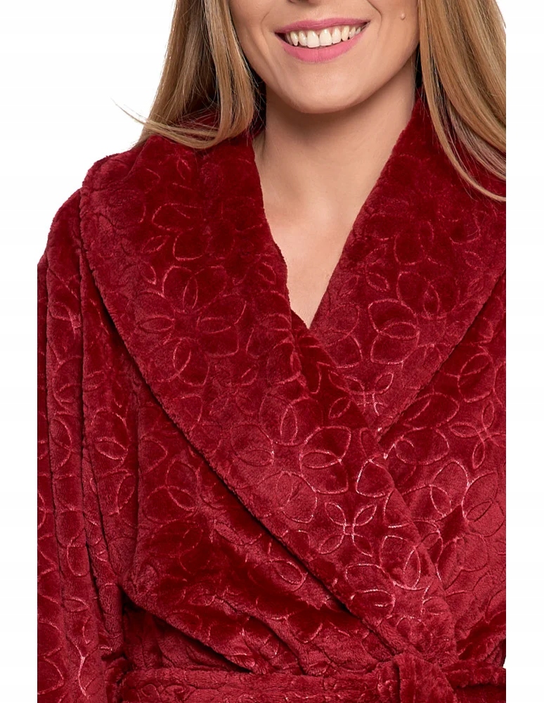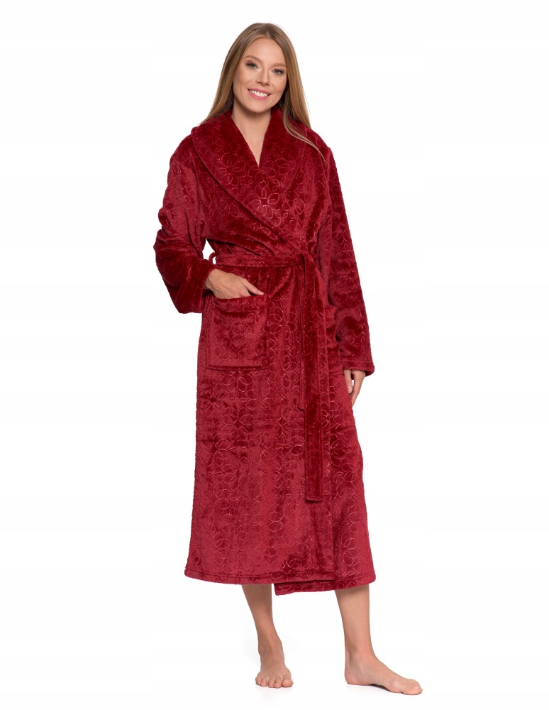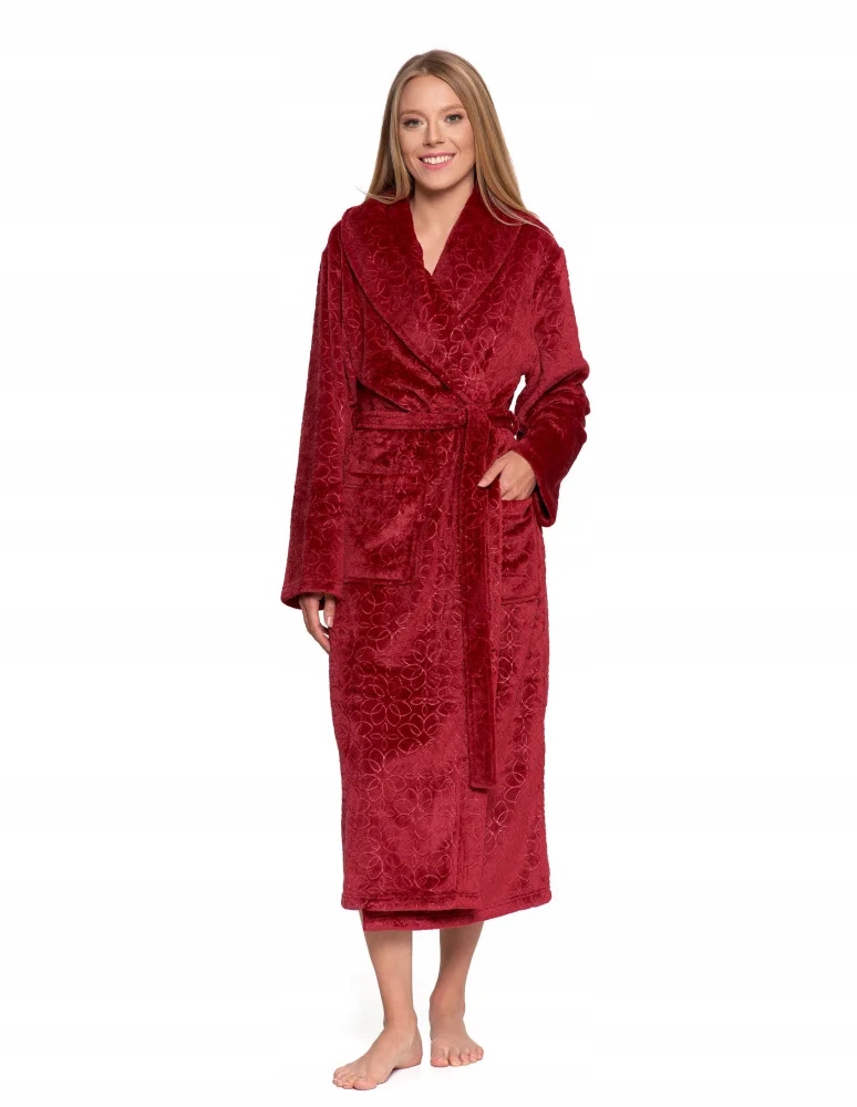 Odkryj wyjątkowy komfort z naszym luksusowym szlafrokiem damskim. Wykonany z niezwykle miękkiego, puszystego materiału, który delikatnie otula ciało i zapewnia ciepło w chłodniejsze dni. Długi fason z paskiem do wiązania w talii gwarantuje idealne dopasowanie, a tłoczony, elegancki wzór dodaje szlafrokowi wyjątkowego charakteru.