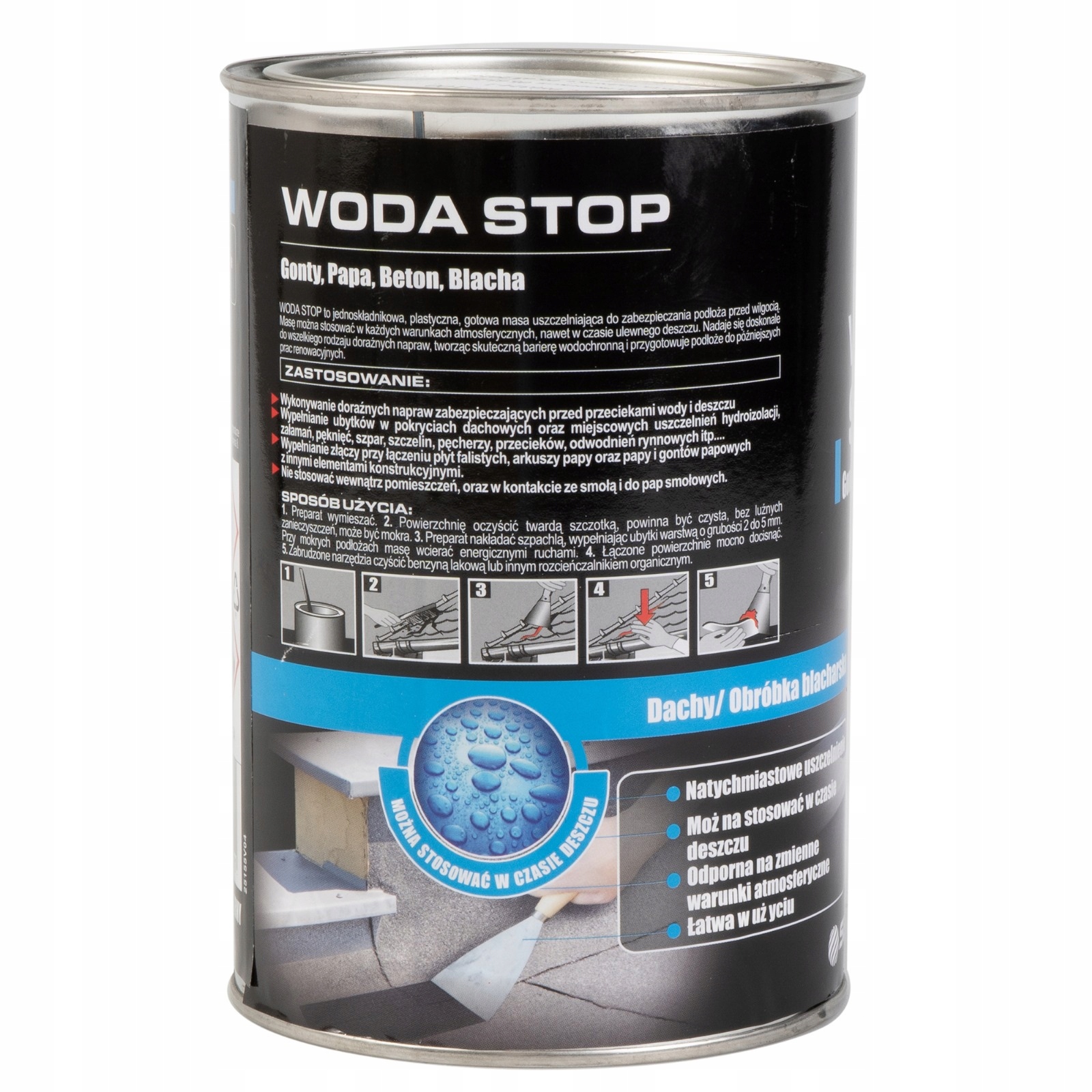 Gotowa do użycia uszczelniająca masa asfaltowa przeznaczona do natychmiastowych napraw pokryć dachowych, rynien itp. Specjalne dodatki chemiczne umożliwiające stosowanie na wilgotnych podłożach oraz tworzenie elastycznych, wzmocnionych włóknami powłok wodochronnych sprawiają, że masa jest idealna do szybkich oraz doraźnych napraw. Nie stosować w kontakcie ze styropianem, smołą oraz do pap smołowych.