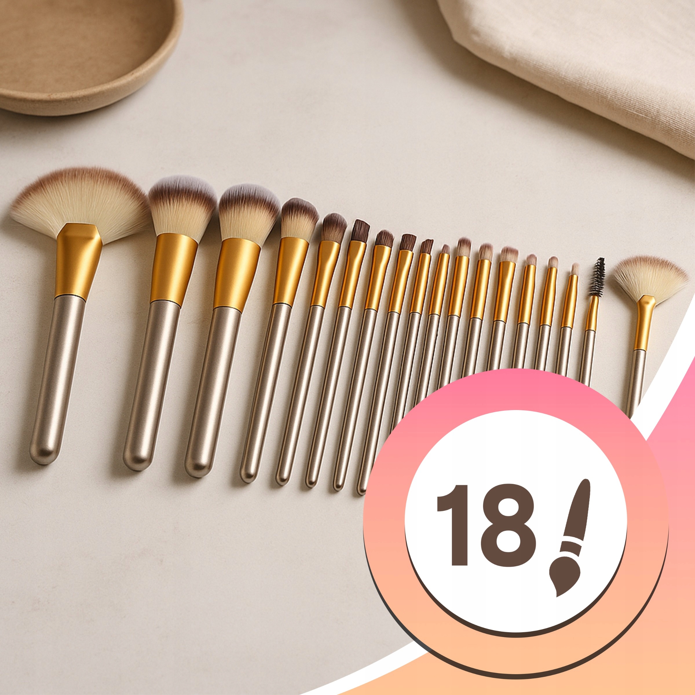 Zestaw 18 pędzli z włosia syntetycznego, osadzony na czarnej skówce to idealne rozwiązanie dla osób ceniących schludny za zarazem perfekcyjny makijaż. Dzięki syntetycznemu włosiu, który jest gładki pędzle nie zatrzymują w sobie produktów kosmetycznych powodując ich mniejsze zużycie. Włosie to jest również łatwiejsze w utrzymaniu czystości oraz mniej podatne na odkształcenia.