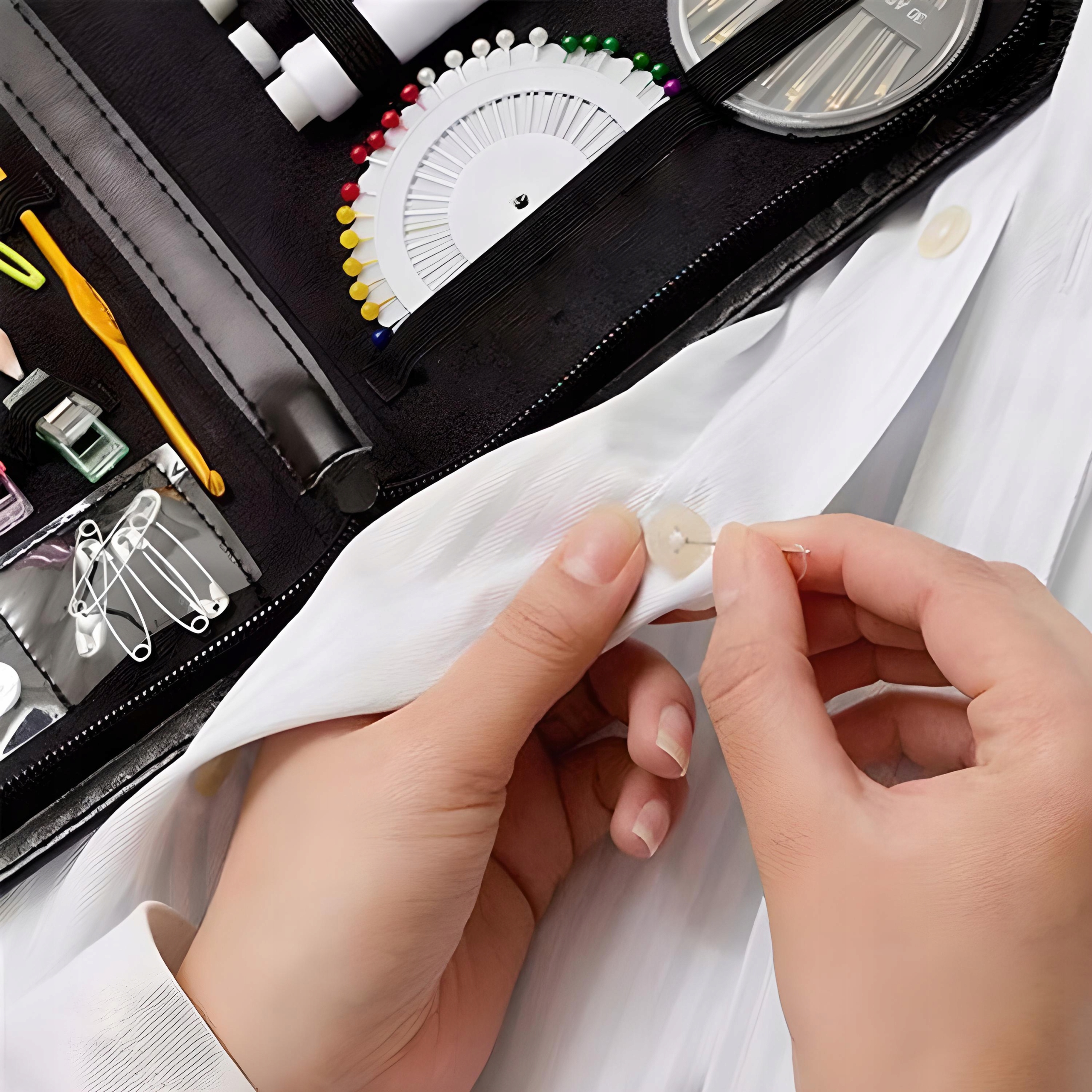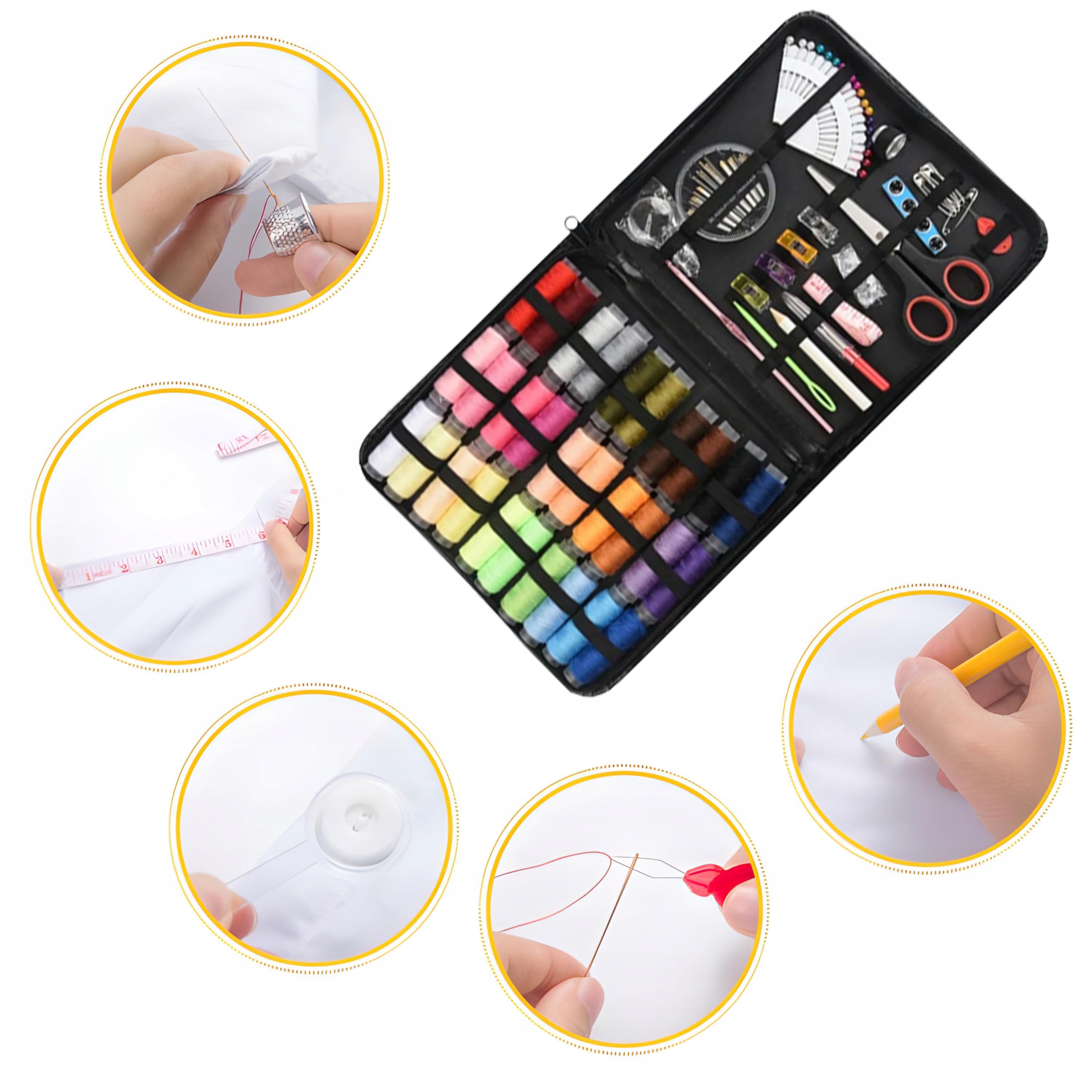 ✔️ Etui składa się z 112 elementów, w tym nici, centymetra, nożyczek, igieł i naparstka, co sprawia, że masz wszystko, czego potrzebujesz, aby szybko przyszyć guziki czy wykonać inne naprawy.