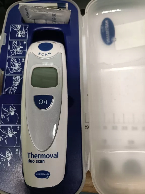 Dziś w sprzedaży posiadamy TERMOMETR BEZDOTYKOWY HARTMANN TERMOVAL DUO SCAN.