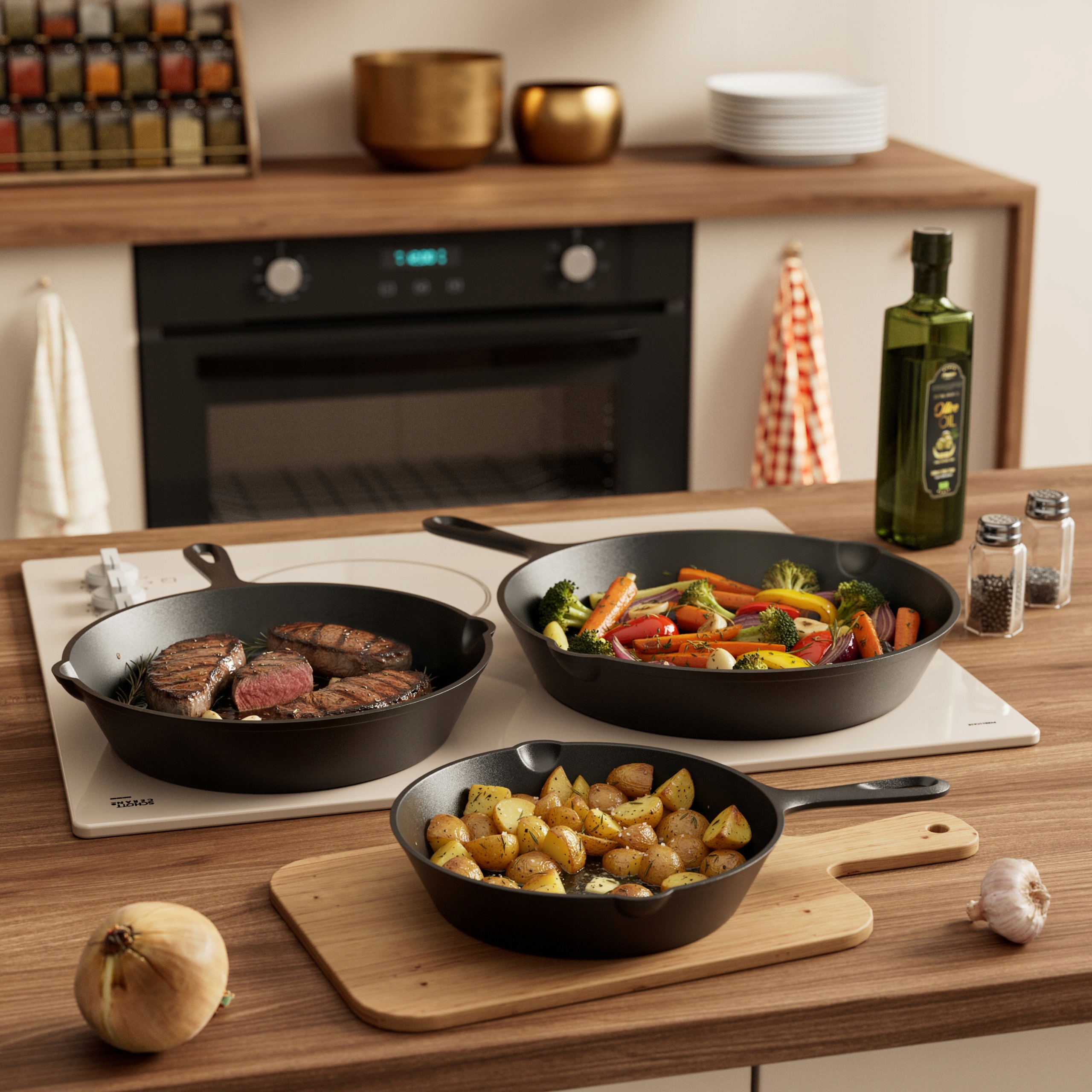 Zestaw patelni żeliwnych DOT został stworzony po to, by dopasować się do każdej kuchni i każdego sposobu gotowania.