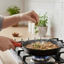 Chroni dłonie przed rozgrzaną rączką patelni, zapewniając pełen komfort i bezpieczeństwo. Dzięki niej możesz bez obaw przenosić gorące naczynia prosto z kuchenki na blat czy stół, nie martwiąc się o temperaturę.