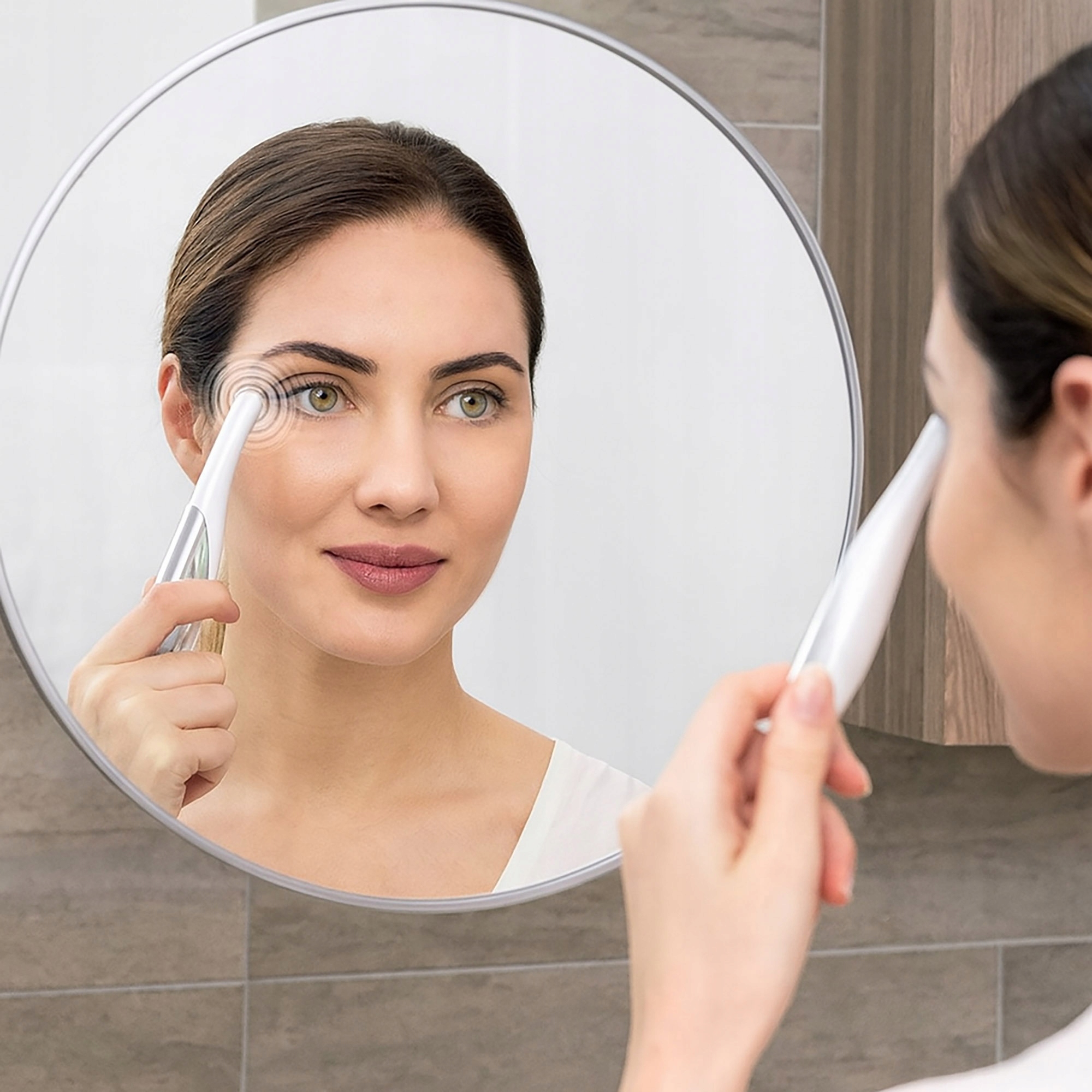 Masażer pulsacyjny do oczu jest specjalnie zaprojektowany do pielęgnacji delikatnych okolic oczu – obszaru najbardziej podatnego na zmarszczki, obrzęki i starzenie. Skutecznie zmniejsza widoczność zmarszczek i "kurzych łapek".