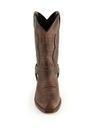 Piękny model długiego kowbojka. Całość wykonana z najlepszych skór. Kolor brązowy, cieniowany. Wierzch mięsista skóra, wykończenie wnętrza-skóra, podeszwa-skóra, obcas-drewno. Ozdobne warkocze i hafty. Ręczna robota. 'Original Goodyear welt'. Nowe, z oryginalnym pudłem.
