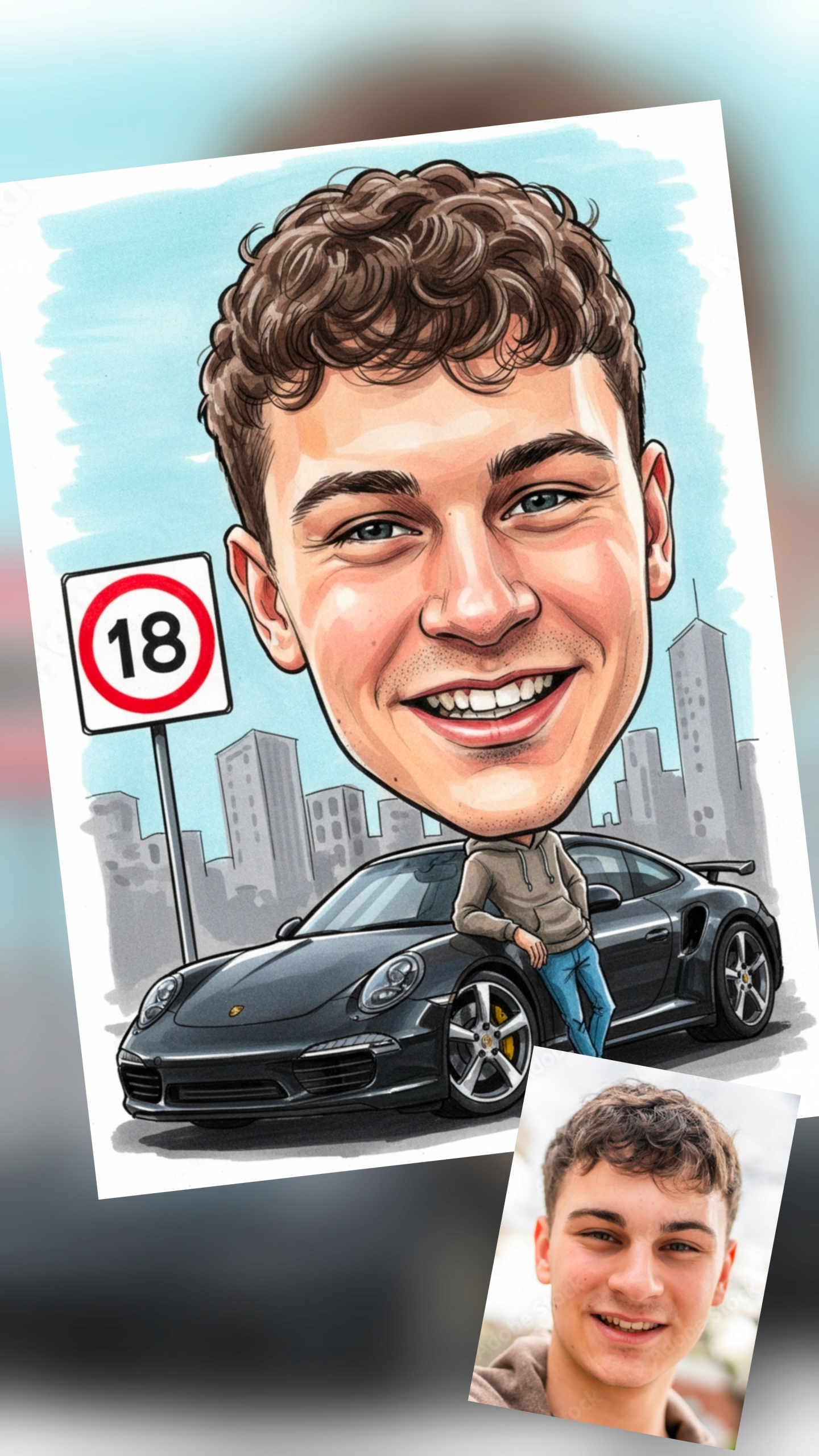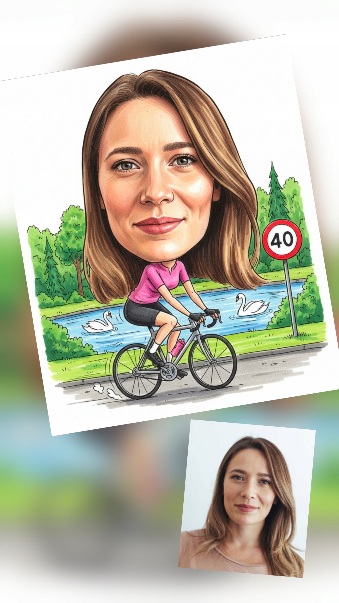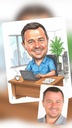 Wyślij wyraźne zdjęcia twarzy na e-mail i napisz, jak wyobrażasz sobie karykaturę – np. jubilat na motorze, nauczyciel z kredą, tata -superbohater.