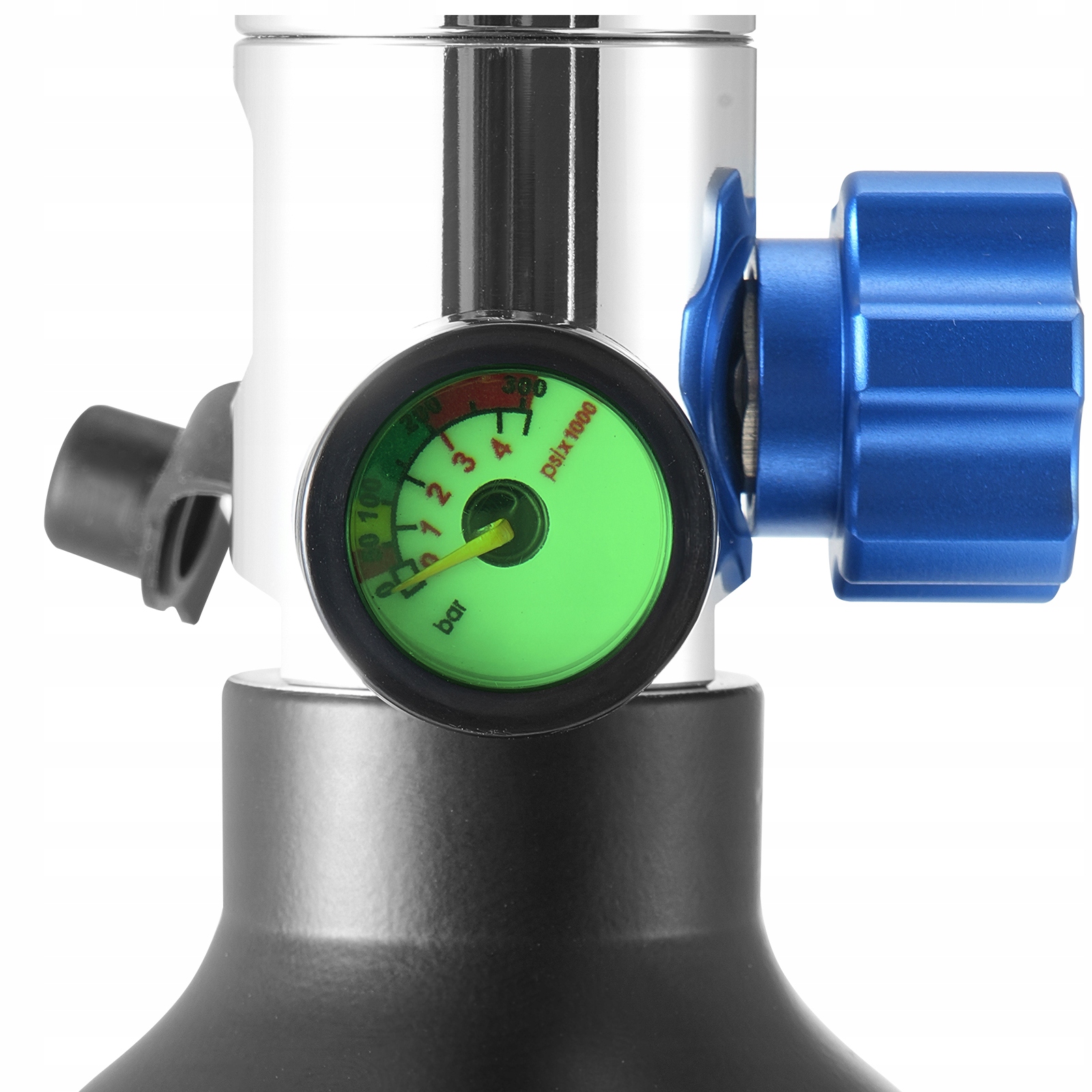 Zachowaj kontrolę nawet w warunkach słabego oświetlenia! Nasz zbiornik wyposażony jest w łatwy do odczytania świecący manometr, dzięki któremu możesz kontrolować poziom powietrza w każdym środowisku podwodnym. Zachowaj bezpieczeństwo i nurkuj pewnie!