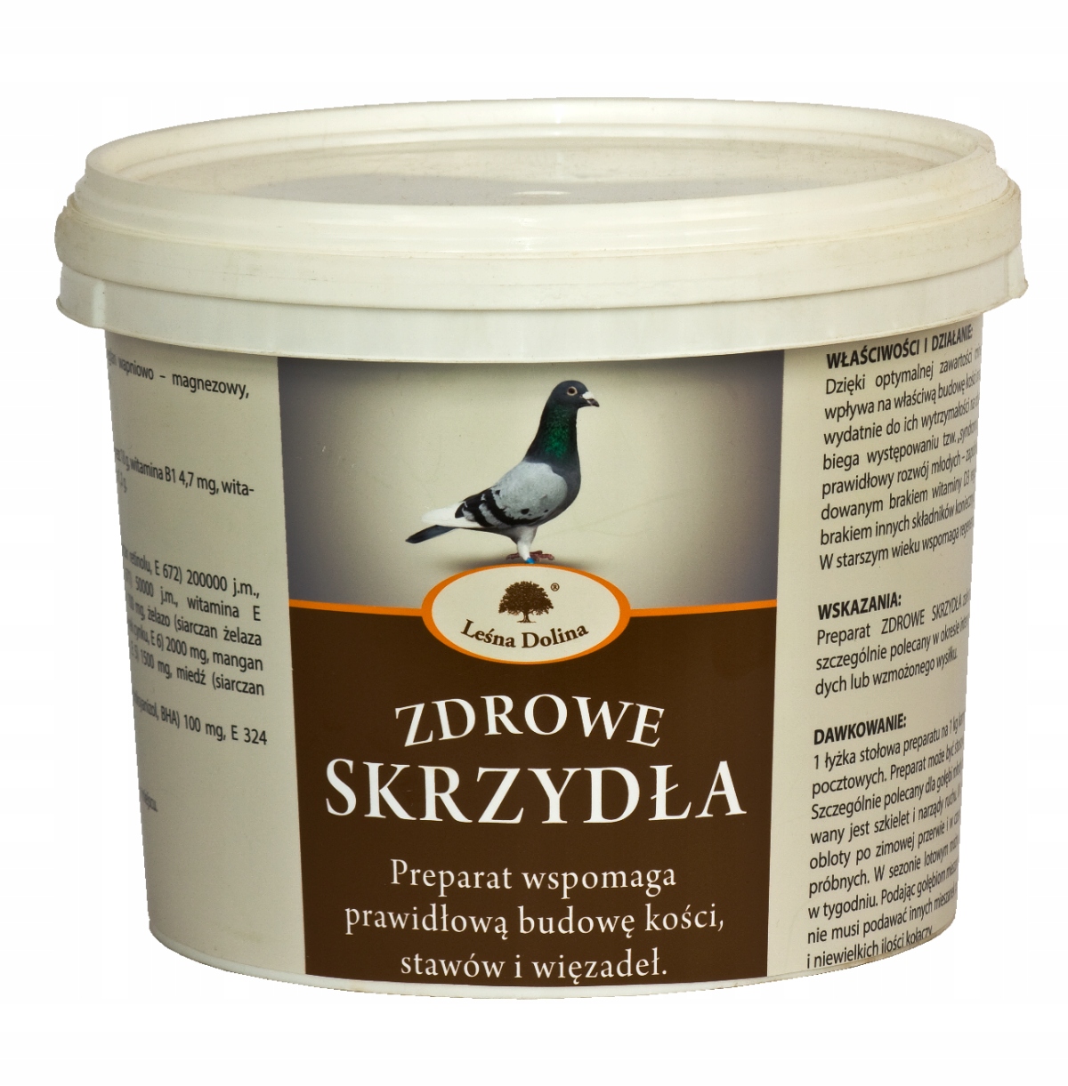 1 łyżka stołowa preparatu na 1 kg karmy - dawka dobowa dla 60 gołębi.