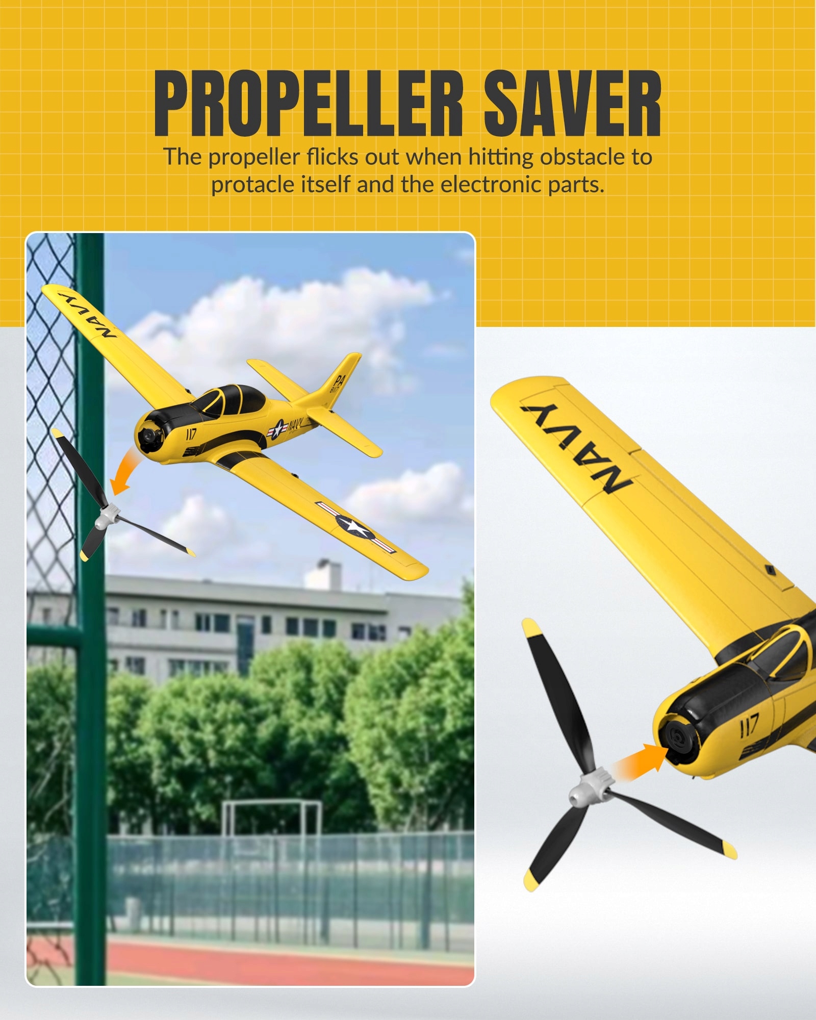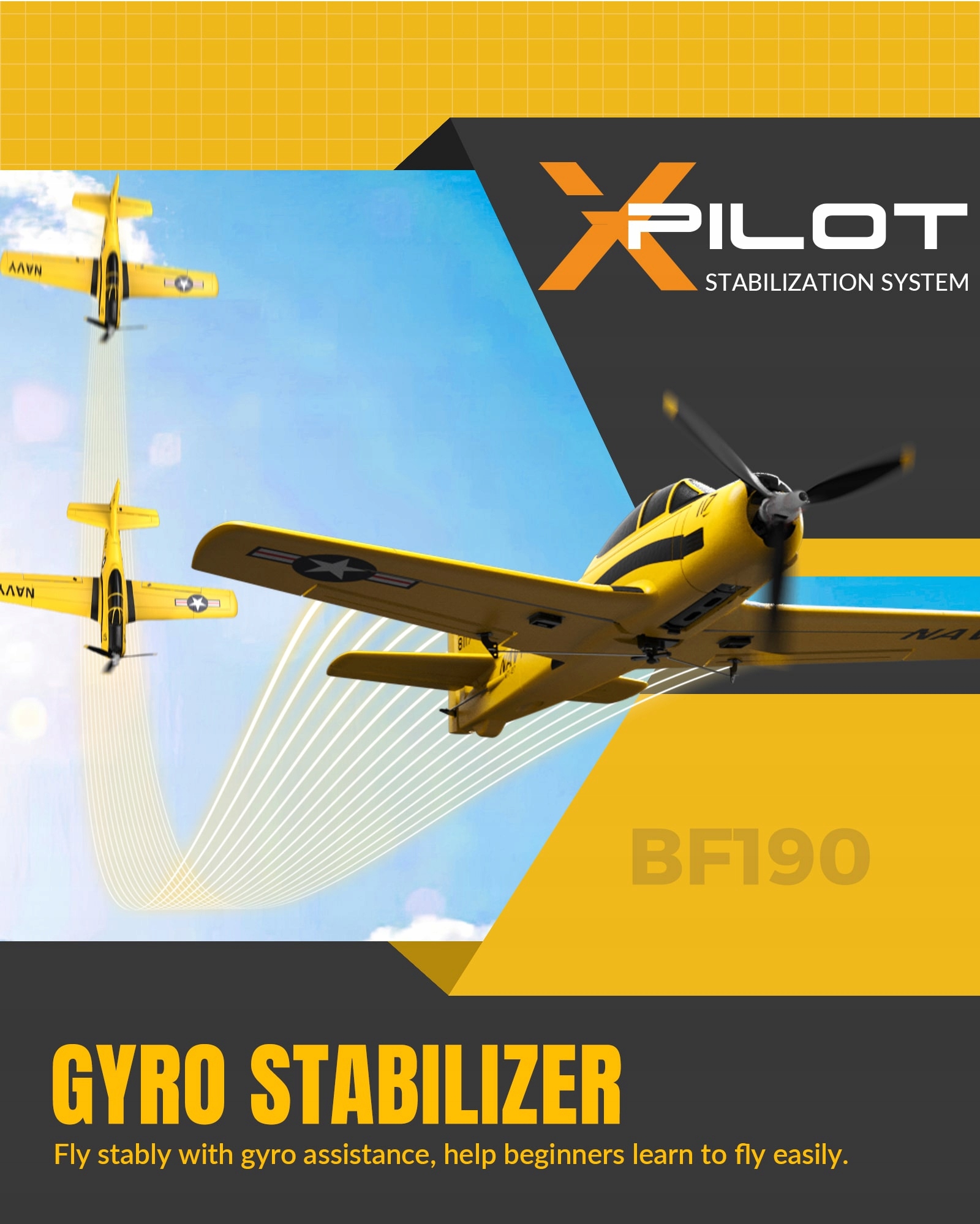 VolantexRC T-28 Trojan 761-9 jest małym samolotem o doskonałych osiągach. Dzięki zintegrowanemu układowi stabilizatora żyroskopu Xpilot z mocnym silnikiem samolot leci stabilnie, zwinnie i potrafi wykonywać akrobacje. Został wyposażony w funkcję akrobacji, wystarczy nacisnąć jeden przycisk i pociągnąć drążek, aby łatwo kontrolować MT-28 Trojan i wykonywać akrobację. 3-poziomowy asystent kontroli lotu (poziom początkujący z pełnym asystowaniem / pośredni z częściową asystą / ekspert w zakresie kontroli ręcznej) pomaga początkującym nauczyć się latać krok po kroku. Zasięg aparatury sterującej około 200m, czas latania na 1 ładowaniu do 15 minut.