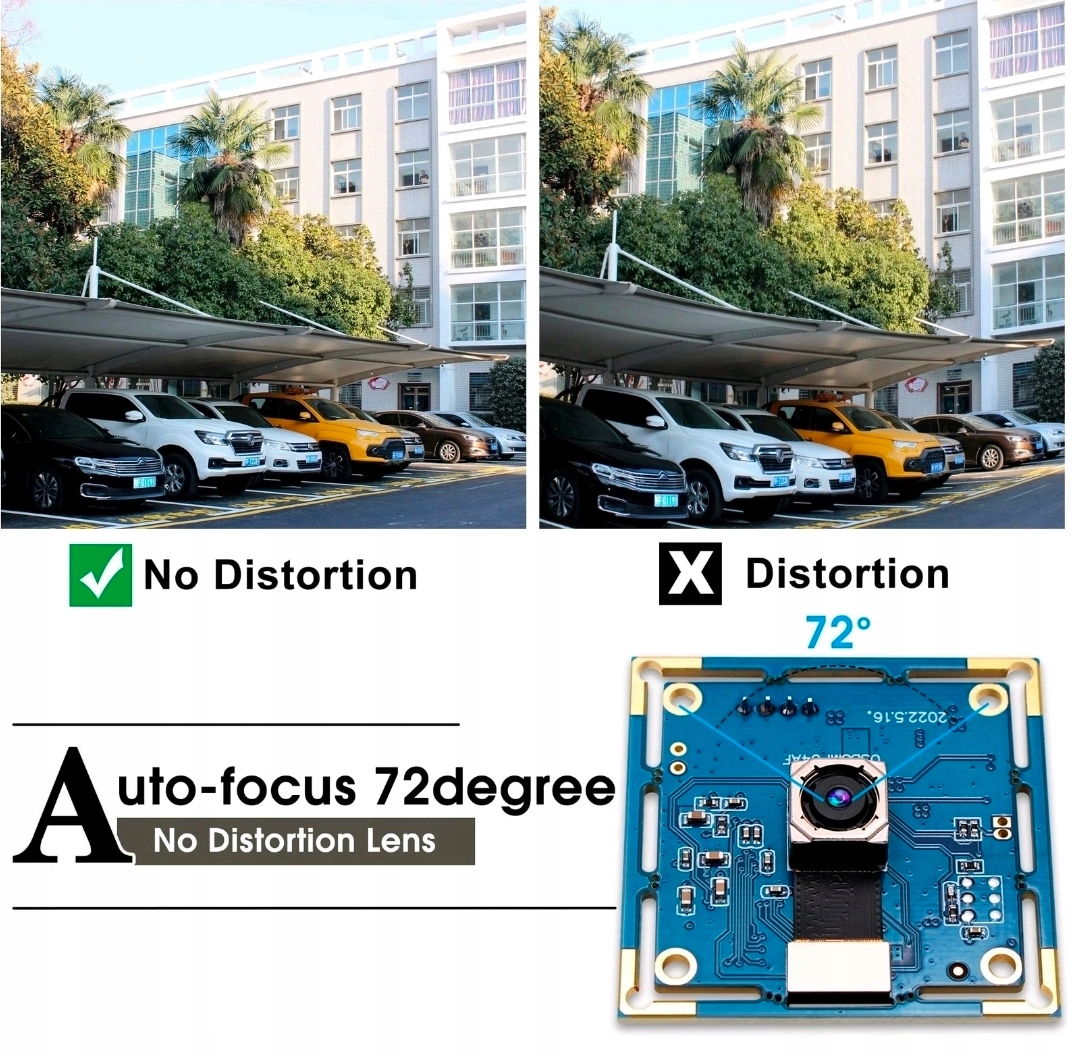 Kamera internetowa z autofokusem i obiektywem 72 stopni: kamera USB 8 MP jest wyposażona w funkcję automatycznego ustawiania ostrości. Funkcja autofokusa umożliwia inteligentne śledzenie i utrzymywanie ostrości twarzy przez cały czas, nie trzeba się martwić o niestabilność i rozmycie. Minimalna odległość identyfikacji wynosi tylko około 5 cm, zapewnia bardzo wyraźny obraz i odzwierciedla realistyczne otoczenie. 72° 72° Kąt widzenia, który obejmuje więcej osób. Idealnie nadaje się do drukarek 3D, rozpoznawania twarzy, domowych systemów monitorowania wideo, kamer na desce rozdzielczej i innych aplikacji do przetwarzania obrazu, które wymagają wysokiej rozdzielczości.