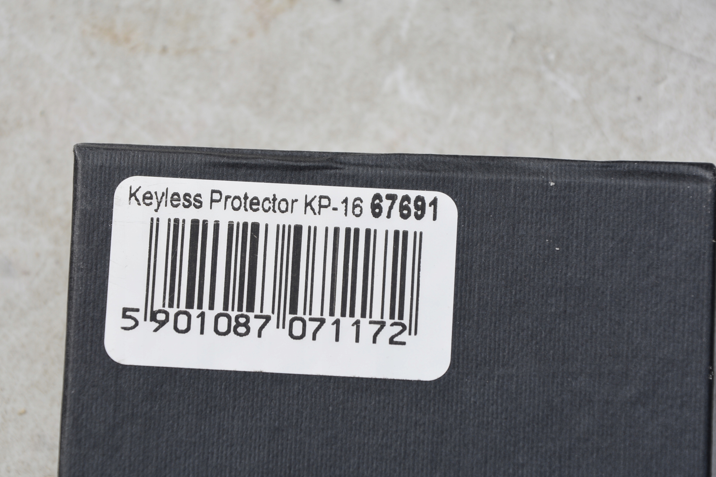 Zabezpieczenie samochodów wyposażonych w system bezkluczykowy (KEYLESS / SMART KEY / KESSY). Chroni przed zeskanowaniem kluczyka i kradzieżą auta "na walizkę", przy jednoczesnym zachowaniu wszystkich funkcji i zalet systemu bezkluczykowego. Miniaturowe urządzenie ma formę cieniutkiego klipsa zakładanego na baterię wewnątrz kluczyka-pilota. Nie wymaga jakichkolwiek przeró¬bek, czy ingerencji w elektronikę samochodu, bez utraty gwarancji na samochód. Instalacja jest niezwykle prosta i zajmuje tyle co wymiana baterii, najwyżej 3 minuty. Co więcej, mo¬żesz to zrobić samodzielnie! Jeśli zmienisz auto, możesz szybko przełożyć zabezpieczenie do kluczyka nowego auta. Zabezpieczenie zamontowane w kluczyku nie skraca żywotności baterii.