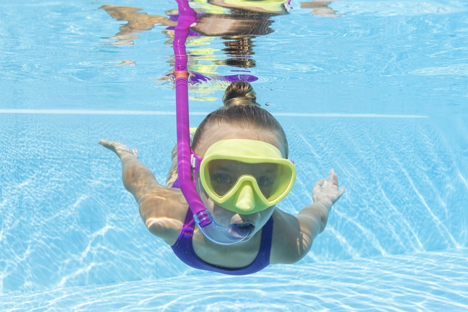 Zestaw do nurkowania dla dzieci marki Bestway pomaga rozwijać umiejętności nurkowania oraz poprawia wydolność płuc dziecka.
