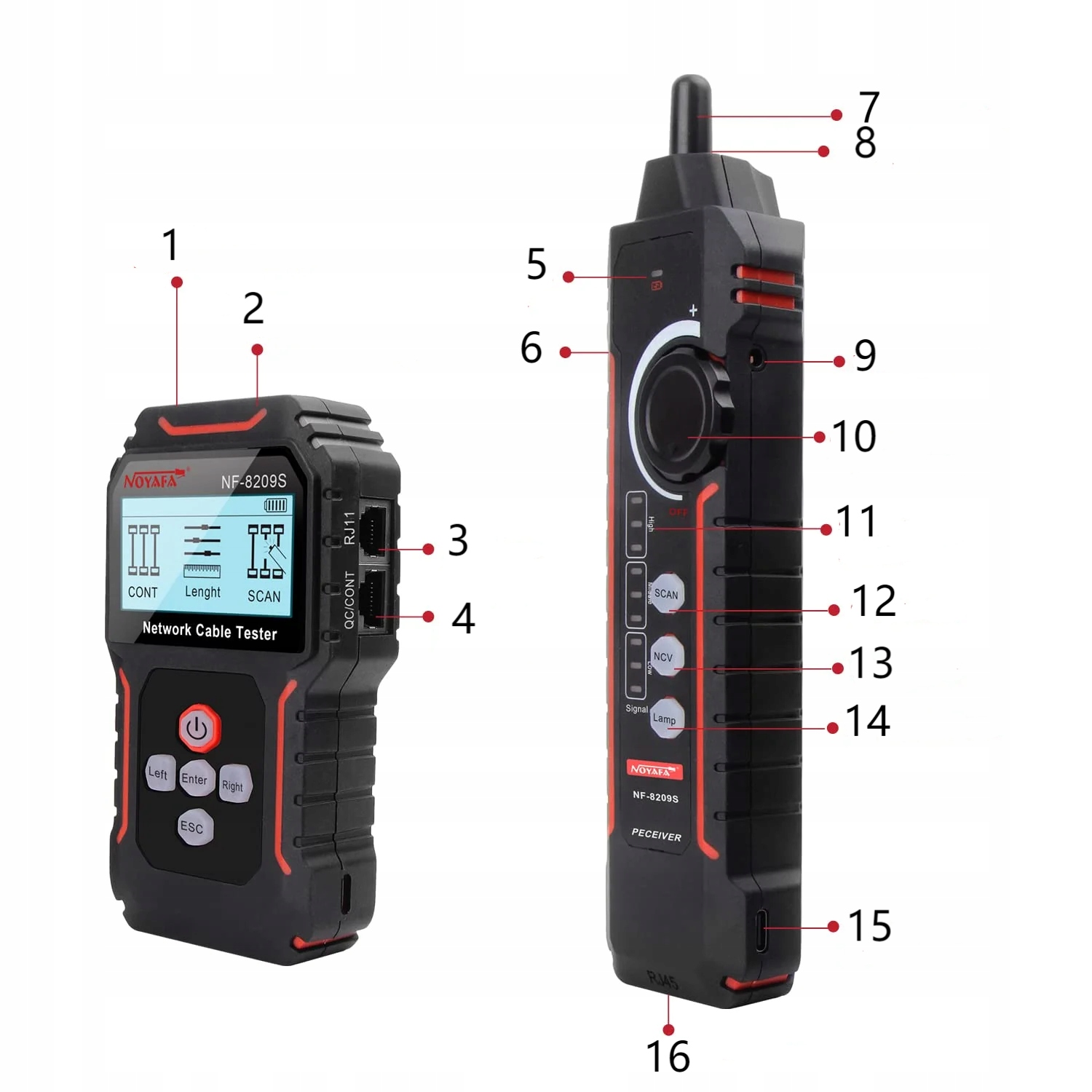Wyposażony w polimerową baterię litową 1,400 mAh, NF-8209S obsługuje długi czas pracy z doładowywaniem typu C.