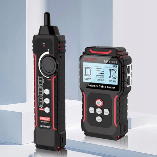 Dodaj NF-8209S do swojej skrzynki narzędziowej i łatwo napraw wszystkie problemy z ethernetem. Rozpocznij sprawdzanie mapy przewodów, śledzenie ścieżki, pomiar długości dla kabli sieciowych. Zlokalizuj porty na przełączniku Ethernet lub routerze i uruchom test łącza.