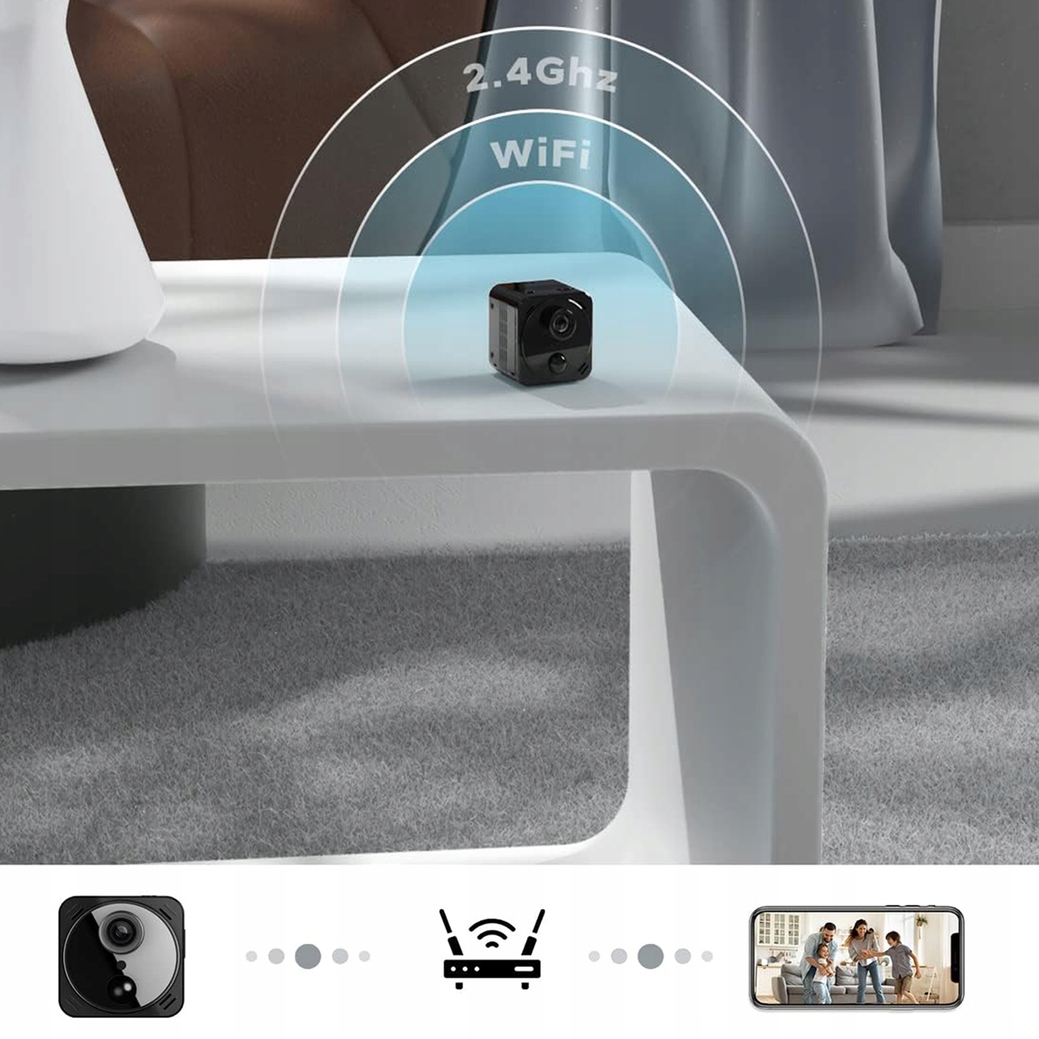 🔆 Mini kamera ma wbudowany "bezodblaskowy" czujnik noktowizyjny na podczerwień, który automatycznie włącza się w warunkach słabego oświetlenia, dzięki czemu można monitorować obraz z kamery 24 godziny na dobę.