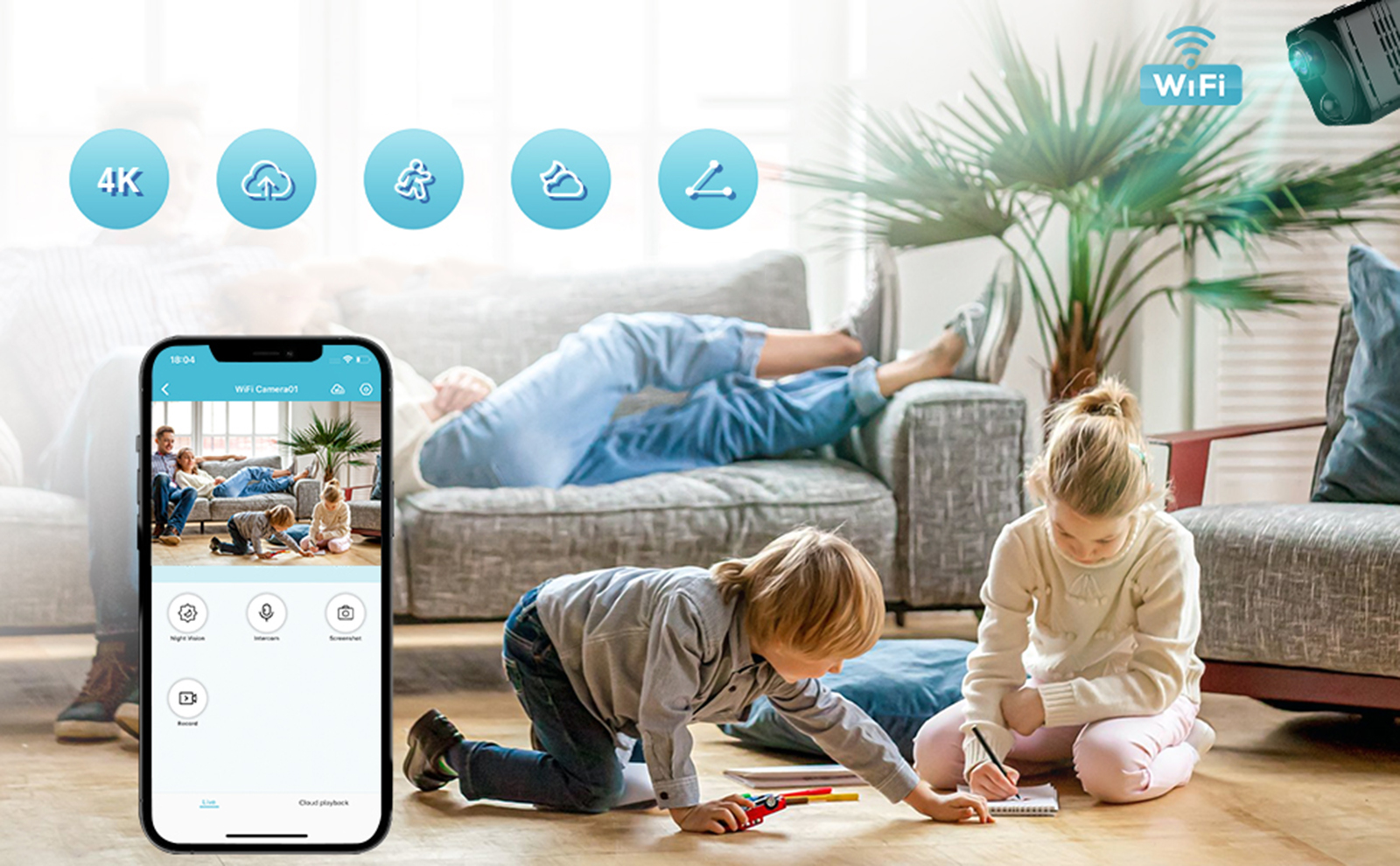 🔆 Ponadto, stałe, bezpłatne przechowywanie w chmurze odbywa się w odstępach 3-dniowych, dzięki czemu można oglądać filmy z ostatnich 3 dni bez karty pamięci lub subskrypcji.