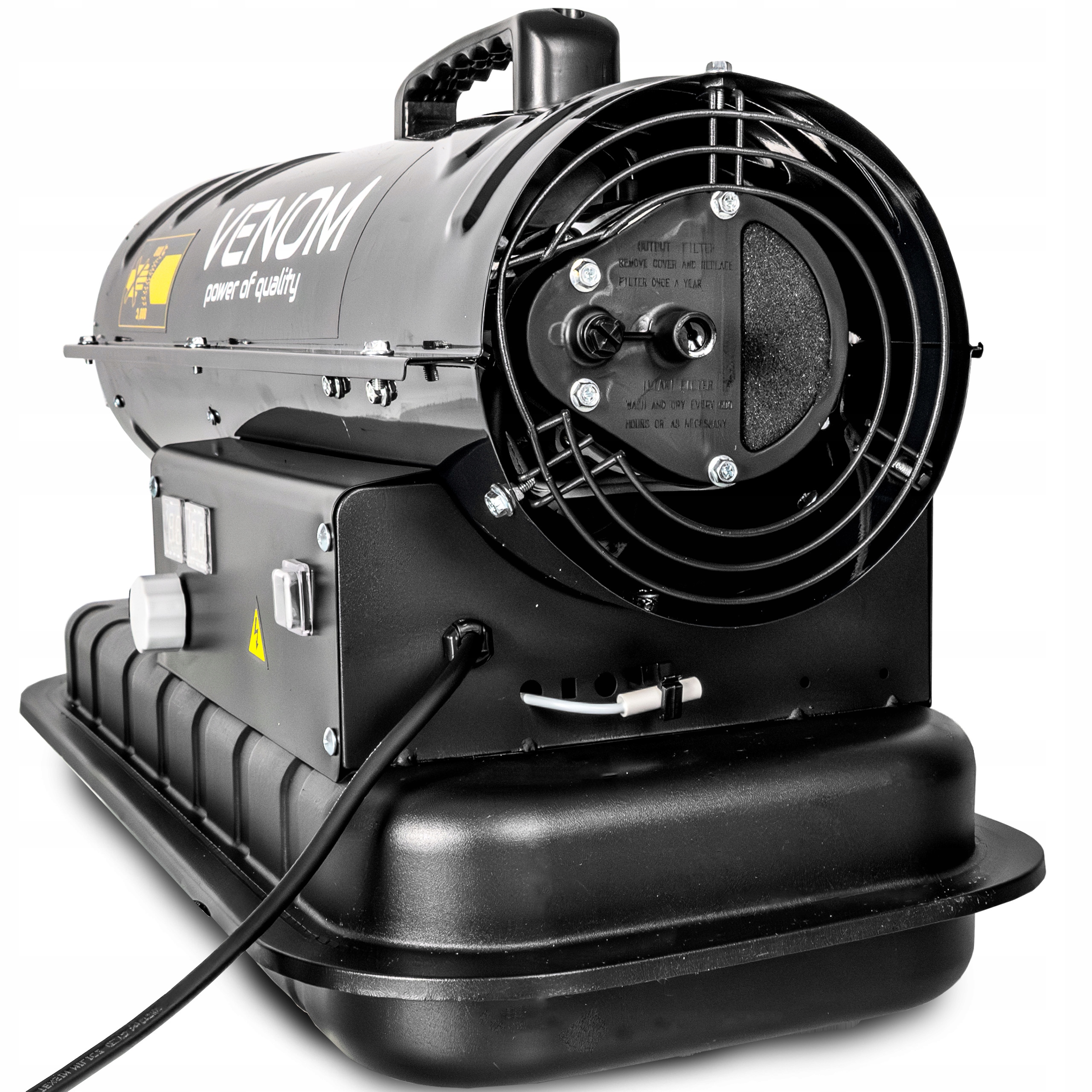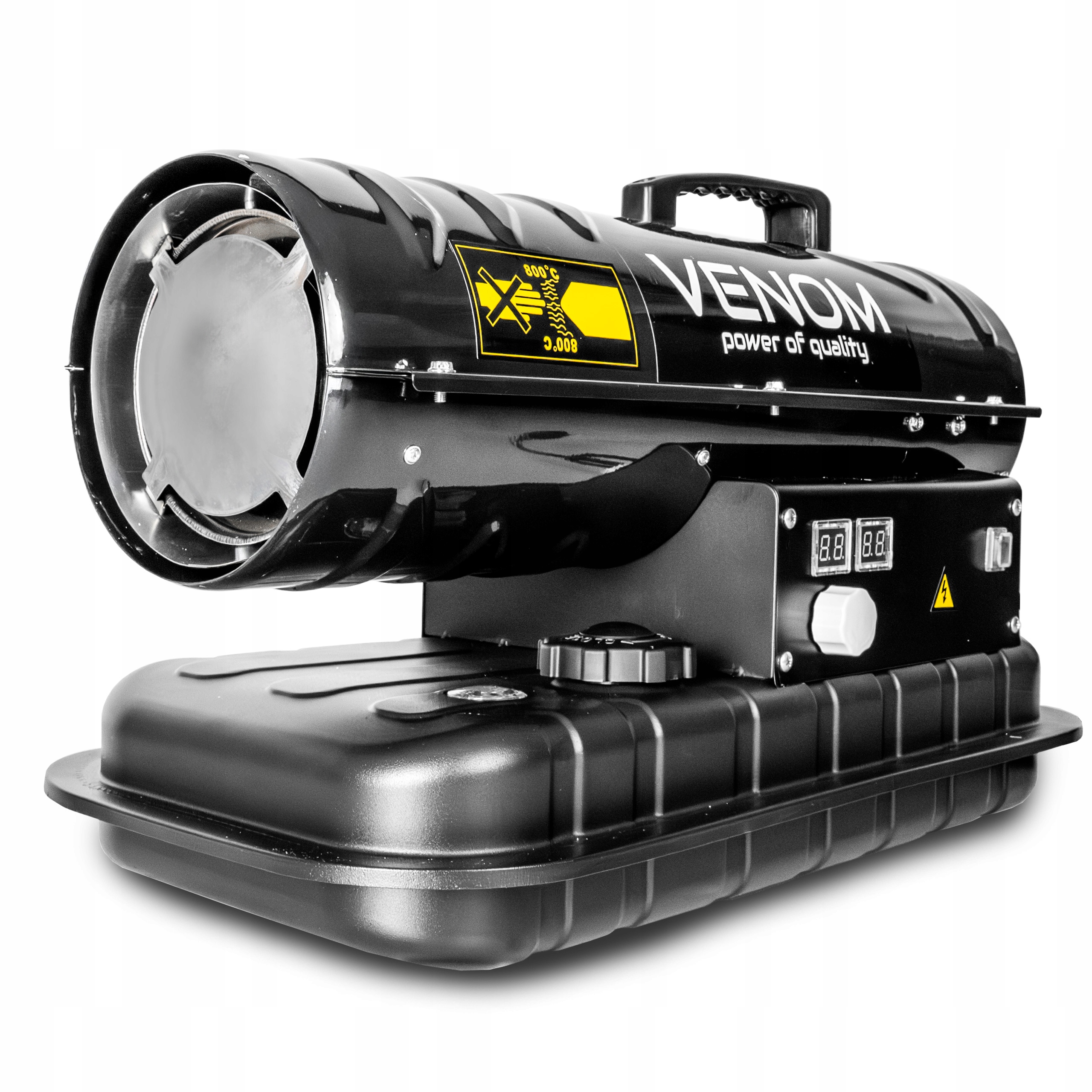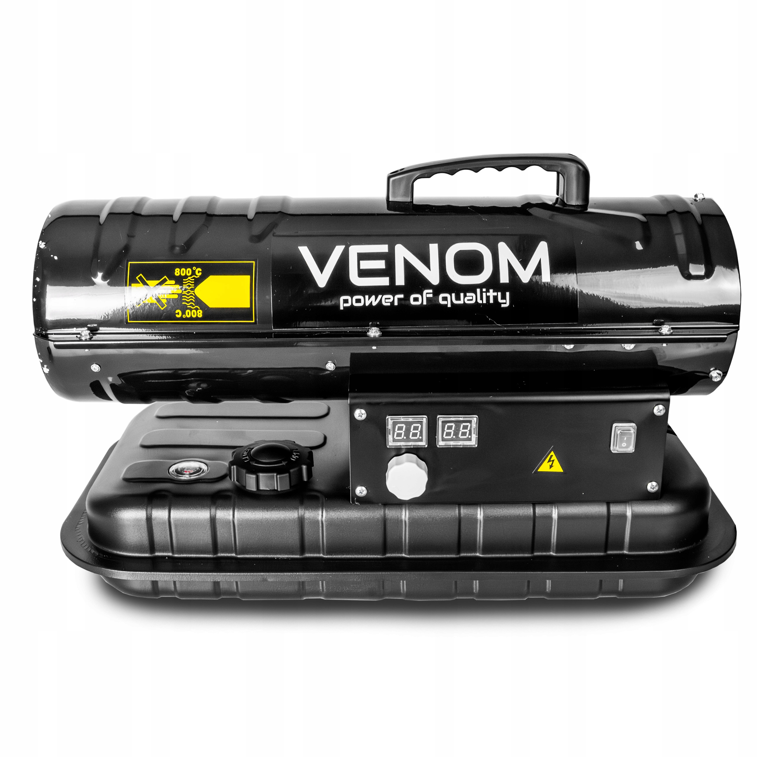 ✅ VENOM PowerHeat 20kW™ – nagrzewnica olejowa o mocy 20 000 W, która w kilka minut podnosi temperaturę w pomieszczeniu, zapewniając szybkie i efektywne ogrzewanie hal, warsztatów, magazynów i garaży.