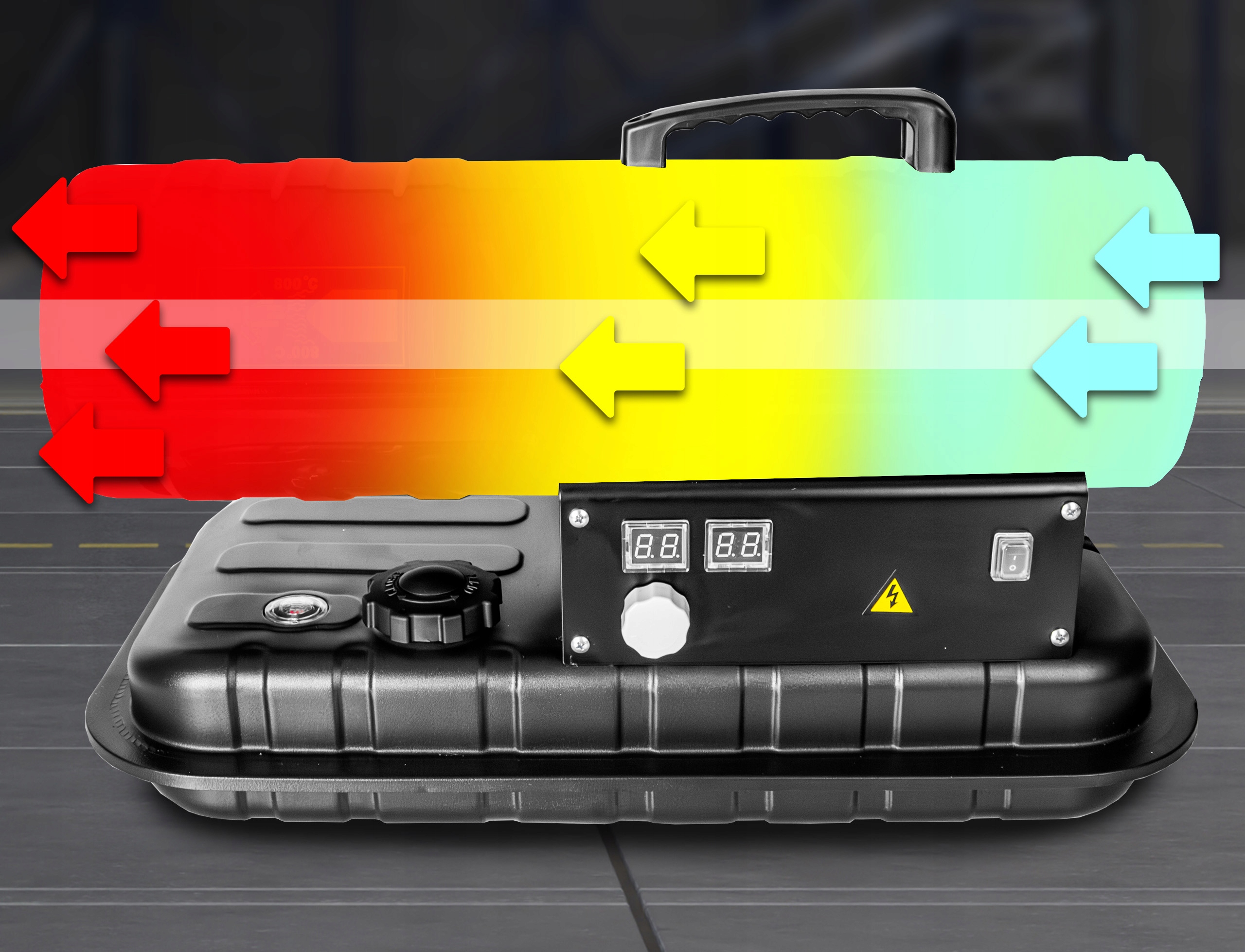 Urządzenie przeznaczone jest do szybkiego i skutecznego ogrzewania średnich oraz dużych pomieszczeń – hal, warsztatów, magazynów, garaży i przestrzeni budowlanych.