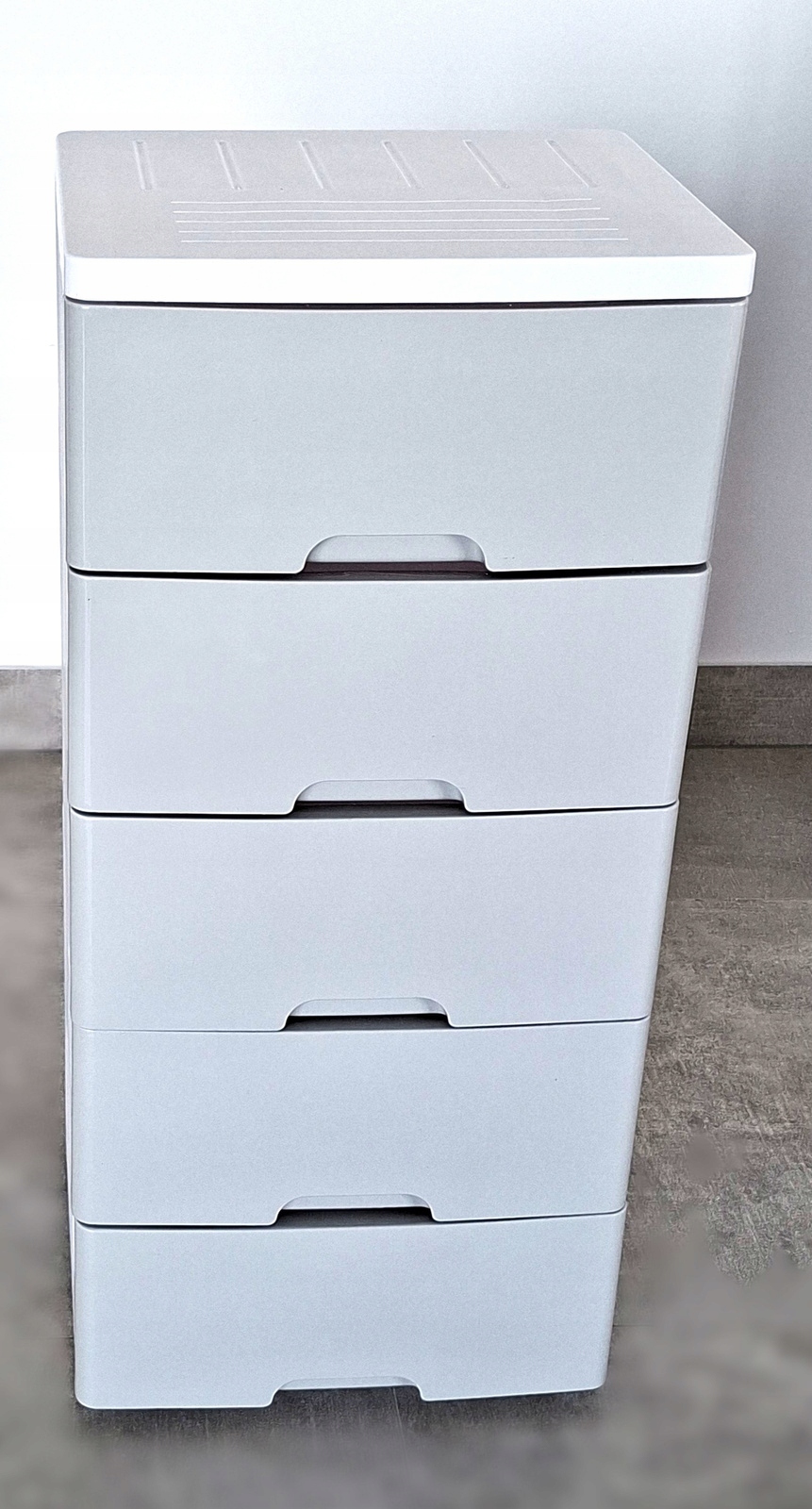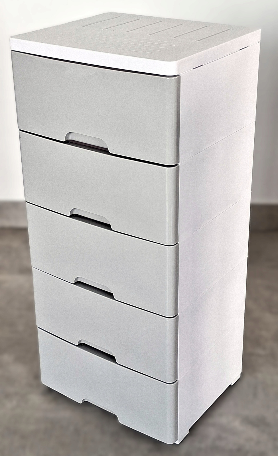 PLASTIKOWY REGAŁ Z SZARYMI 5 SZUFLADAMI – PRAKTYCZNY I STYLOWY PORZĄDEK