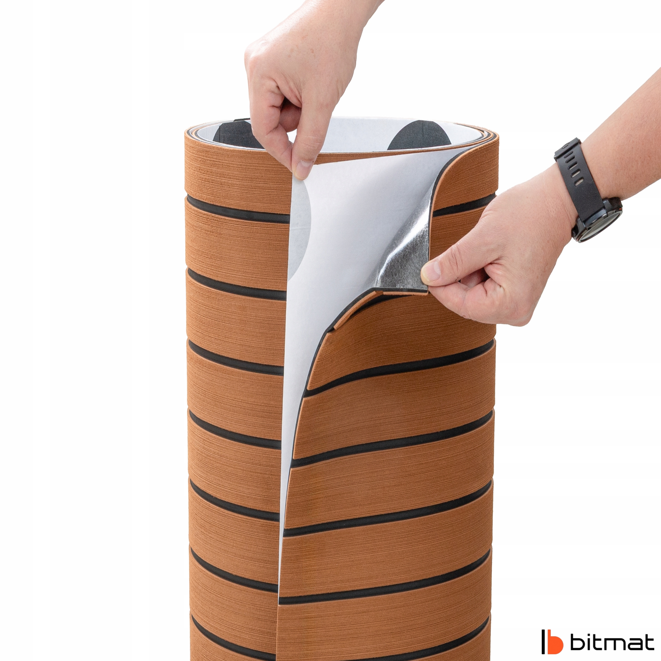 Przedmiotem oferty jest wysokiej klasy mata z pianki EVA marki Bitmat w kolorze teak – inspirowanym naturalnym drewnem tekowym, powszechnie stosowanym w jachtingu. To produkt, który łączy klasyczny wygląd naturalnego drewna z trwałością nowoczesnych materiałów syntetycznych. Pianka EVA (etylo-octan winylu) to materiał odporny na działanie wody, promieni UV i słonego powietrza. Dzięki strukturze zamkniętokomórkowej nie nasiąka wodą, nie odkształca się i zachowuje estetyczny wygląd nawet po wielu sezonach użytkowania. To doskonała alternatywa dla tradycyjnych pokładów drewnianych — lżejsza, łatwiejsza w montażu i niewymagająca konserwacji.
