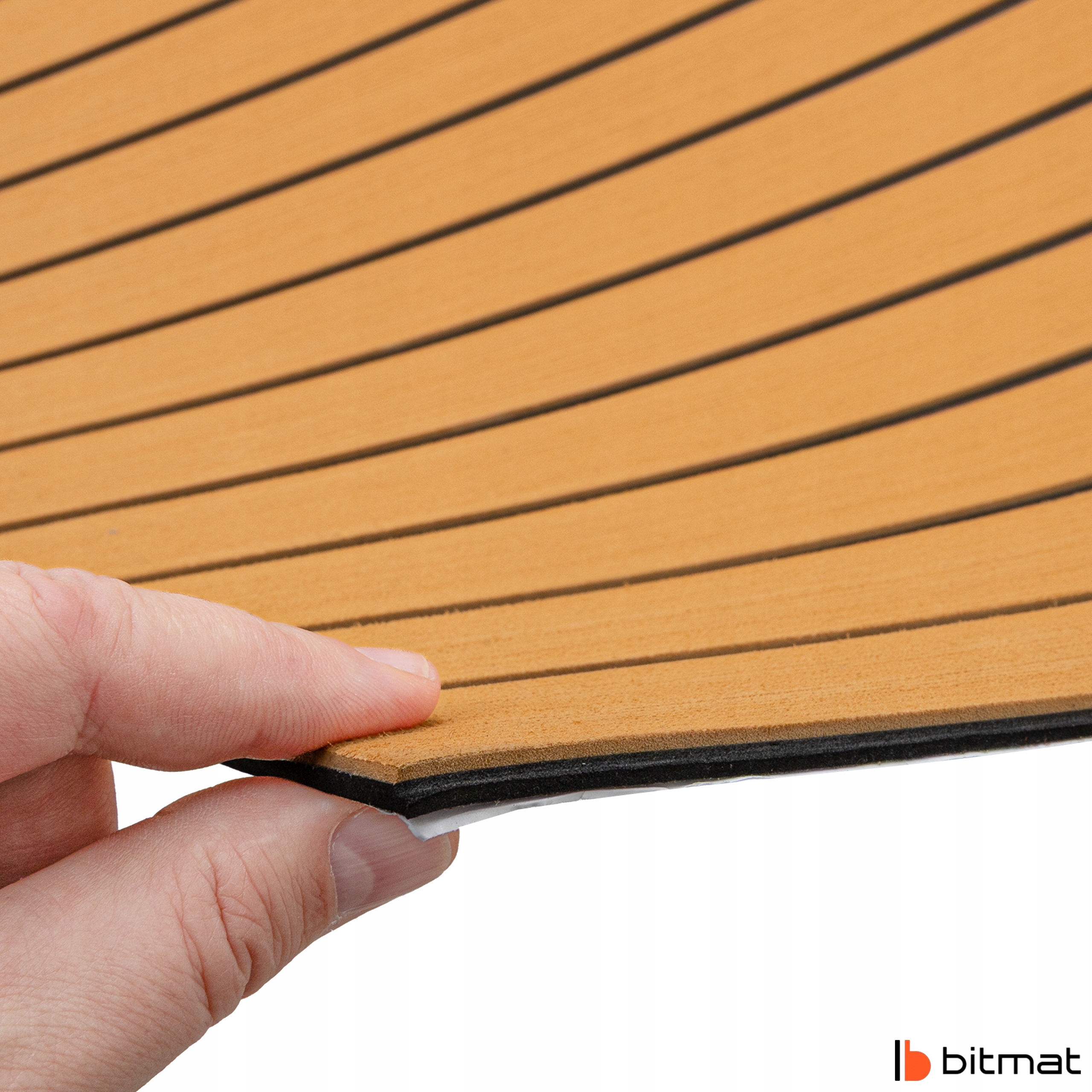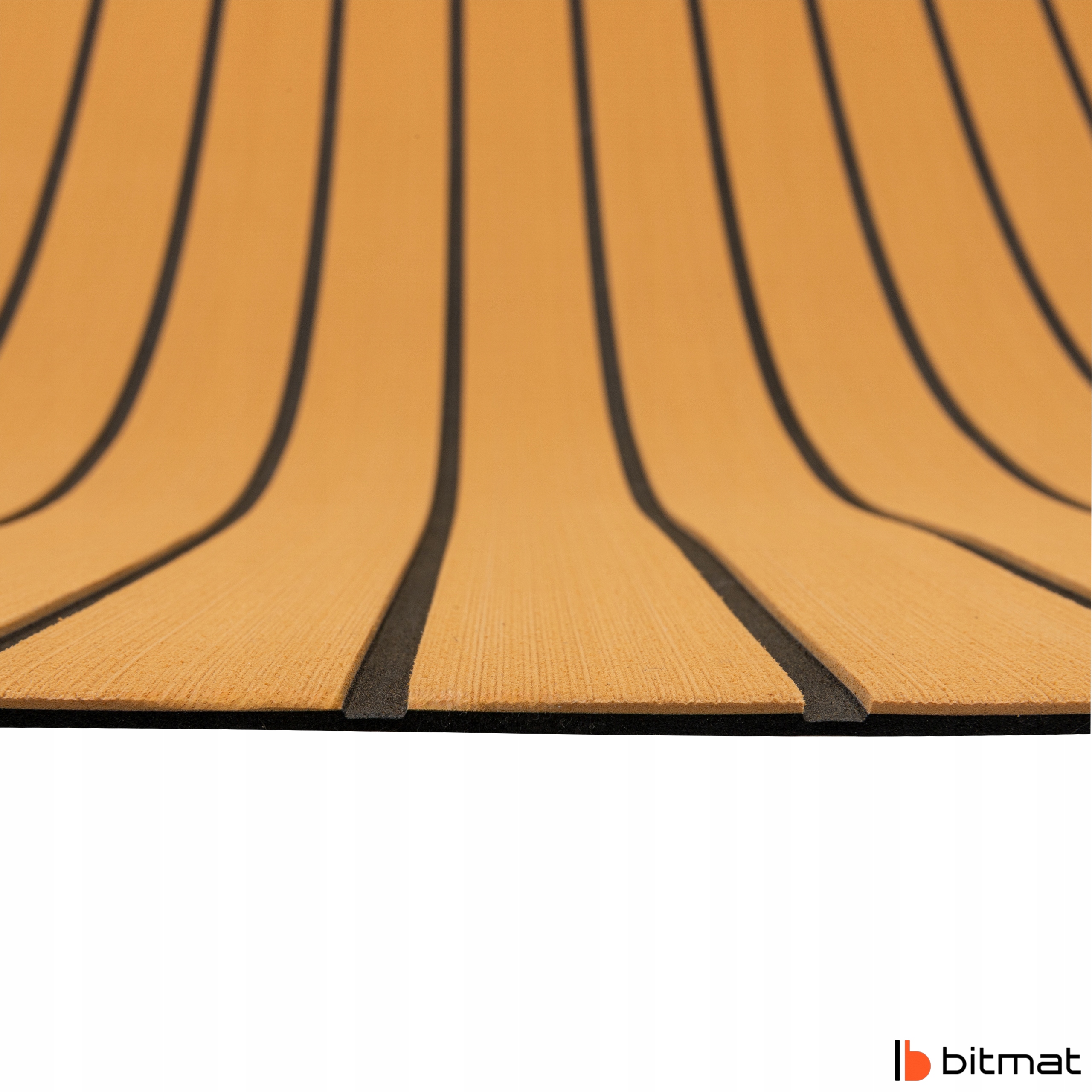 Prezentowany produkt to nowoczesna mata pokładowa z pianki EVA marki Bitmat, wykonana w kolorze Złoty Teak – odcieniu inspirowanym ciepłym tonem naturalnego drewna, który nadaje przestrzeniom morską elegancję i luksusowy charakter. Mata została opracowana z myślą o profesjonalnych zastosowaniach jachtowych i rekreacyjnych, łącząc wytrzymałość syntetycznych materiałów z estetyką drewna tekowego. Pianka EVA (etylo-octan winylu) to surowiec o zamkniętokomórkowej strukturze, dzięki czemu nie chłonie wody, nie pleśnieje i jest odporna na sól oraz promienie UV. W efekcie mata zachowuje swoje właściwości przez wiele sezonów — bez pęknięć, odbarwień czy utraty elastyczności.