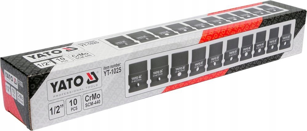 Nasadki udarowe Yato krótkie - komplet 10 kluczy nasadowych.