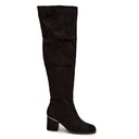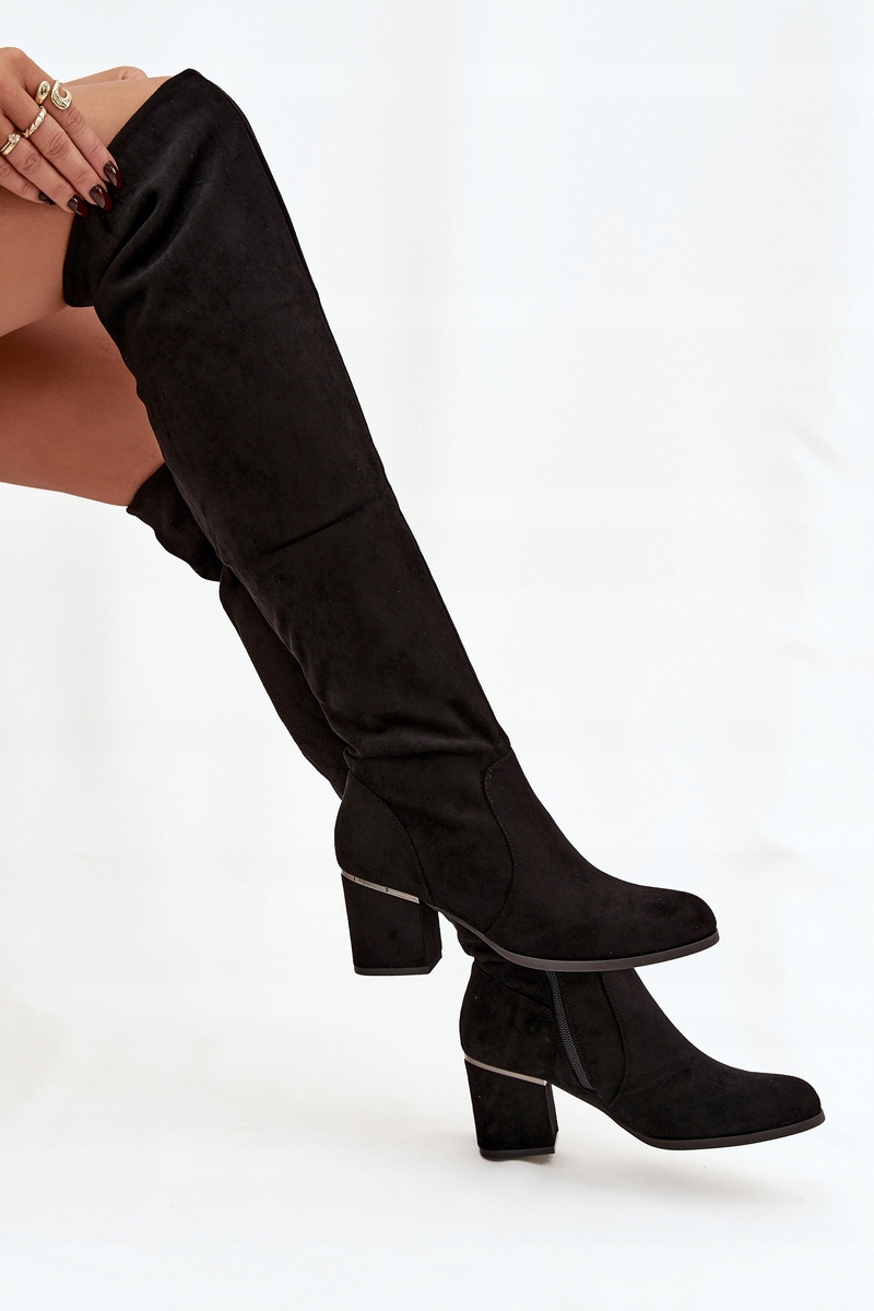 Kozaki damskie wykonane z imitacji zamszu to modna propozycja na chłodniejsze dni. Model z wysoką cholewką za kolano pięknie podkreśla nogi, dodając stylizacji kobiecego charakteru. Osadzone na stabilnym obcasie typu słupek zapewniają wygodę i pewność kroku. Kozaki są wsuwane, a zamek umieszczony na dole ułatwia zakładanie i dopasowanie do nogi. To doskonały wybór zarówno do sukienek i spódnic, jak i do dopasowanych spodni. Przy wyborze rozmiaru prosimy sugerować się tabelą rozmiarów.