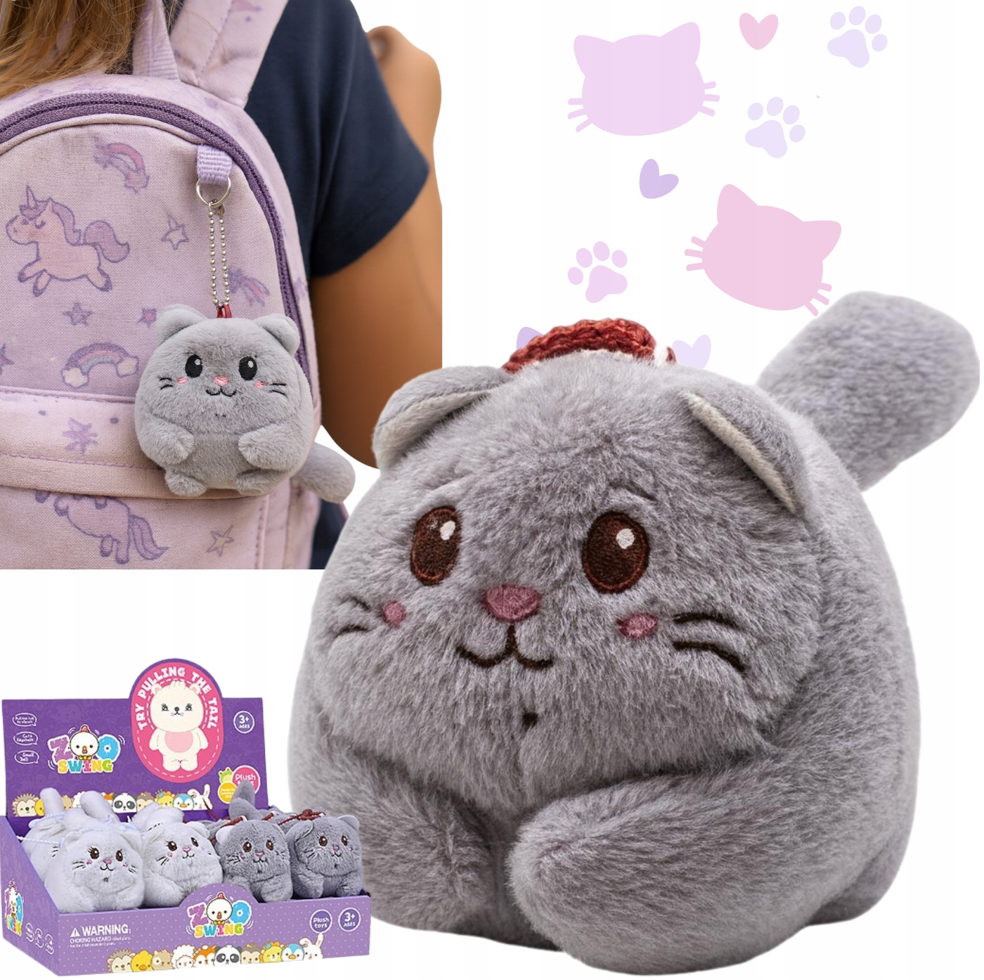 Pluszowy kotek – brelok zawieszka maskotka na naciąg z ruszającym się ogonkiem.