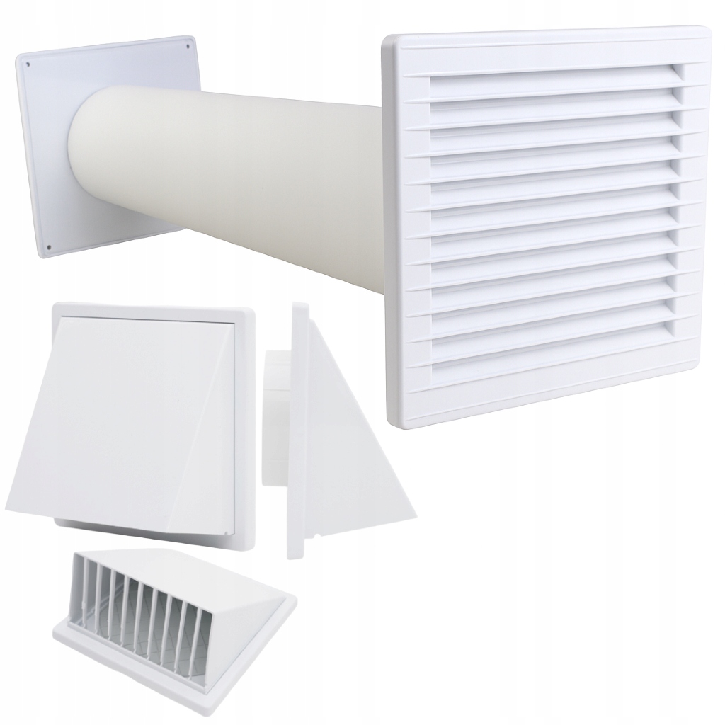Zestaw wentylacyjny przez ścianę to kompletne rozwiązanie do skutecznej wymiany powietrza w pomieszczeniach mieszkalnych, biurowych lub użytkowych. W skład zestawu wchodzą wszystkie niezbędne elementy: rura przelotowa 0,5m, kratka wewnętrzna 17x17cm oraz zewnętrzna kratka z okapem zabezpieczającym przed deszczem i wiatrem z wbudowaną klapą zwrotną, którą można zdemontować w celu swobodnego przepływu powietrza.