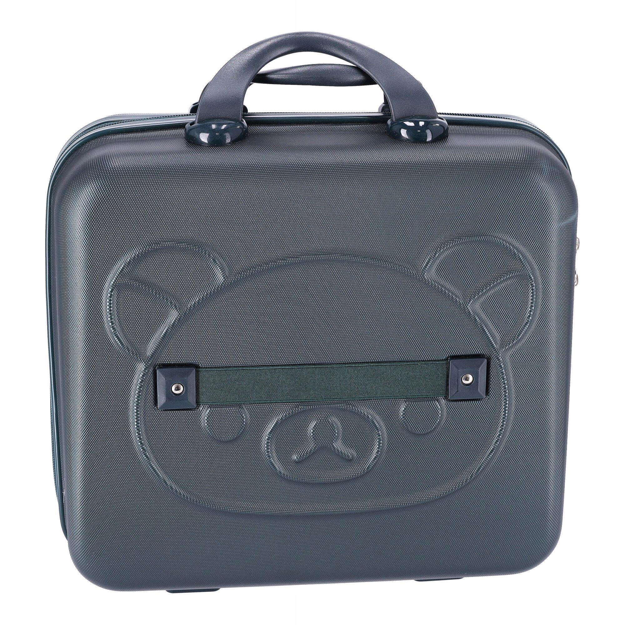 Bagaż dziecięcy / Urocza kosmetyczka podróżna - ciemnozielona Urocza kosmetyczka podróżna idealnie się sprawdzi jako bagaż podręczny dla Twojej pociechy ! Nasza walizeczka jest bardzo pakowana, co umożliwia Twojemu dziecku zabrania ze sobą niezbędnych rzeczy w podróż. Idealnie się sprawdzi na wszelkiego rodzaju wycieczki, wyjazdy wakacyjne, kolonijne, szkolne czy przedszkolne wyprawy. Uroczy wzór misa 3D przypadnie do gustu każdemu dziecku ! Ta podróżna kosmetyczka została wykonana z tworzywa ABS. Bardzo pojemna kosmetyczka jest w stanie pomieścić oprócz dużych kosmetyków jak szampon, odżywki, balsamy, lakiery, dodatkowo suszarkę, prostownicę i inne niezbędne w podróży akcesoria. Funkcjonalny model został wyposażony w uchwyt ułatwiający przenoszenie kosmetyczki. Bardzo duża kosmetyczka posiada wewnętrzną przegrodę zamykaną suwakiem na kosmetyki oraz dwie główne przegrody ułatwiającą organizację kosmetyków.Wyposażenie: • blokada zamka na specjalny szyfr • dodatkowa kieszonka wewnętrzna zamykana na suwak • uchwyt do noszenia • zapinana na zamek błyskawiczny