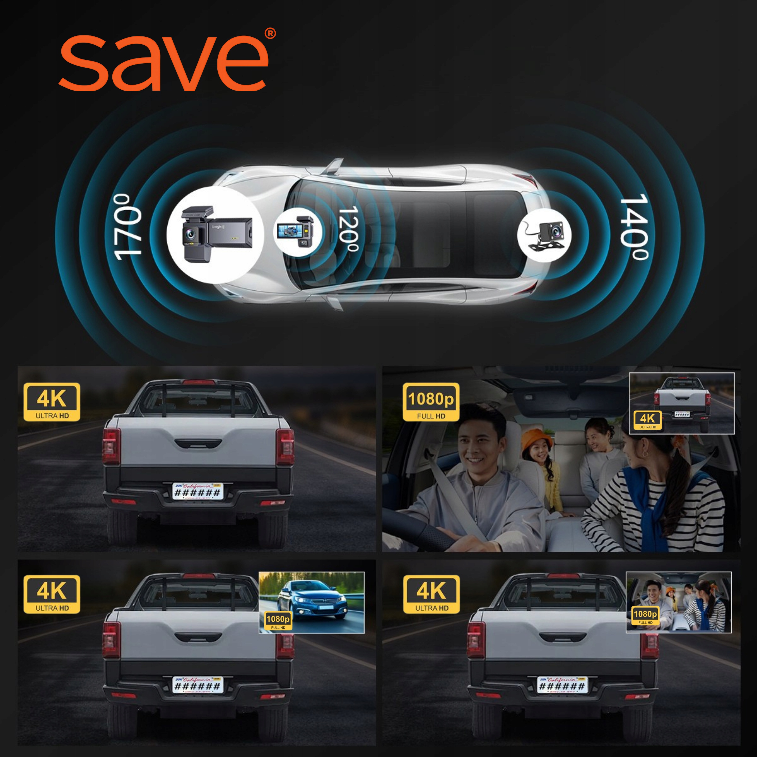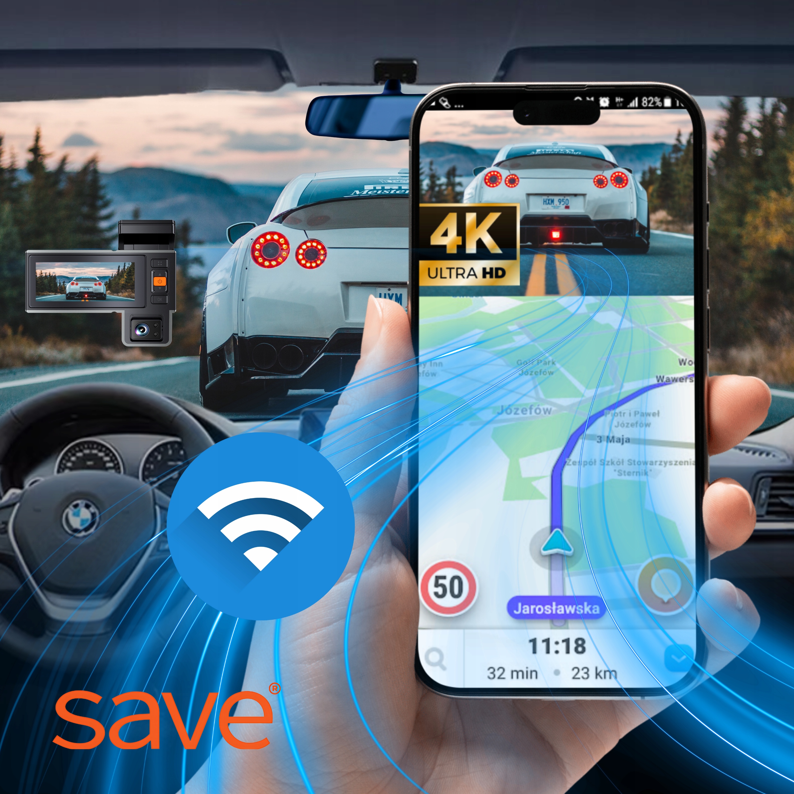 Wideorejestrator A5-S marki SAVE® oferuje nagrywanie w rozdzielczości 4K na kamerze przedniej i 1K FULL HD na tylnej stanowią jedno z najbardziej zaawansowanych rozwiązań na rynku, które łączy wysoką jakość obrazu z funkcjonalnością.
