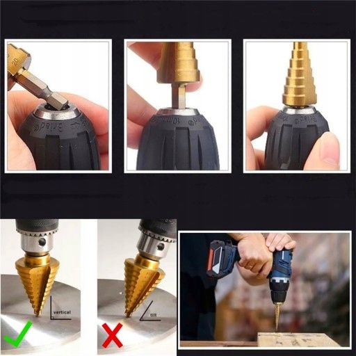 Szeroki zakres zastosowań: Idealne wiertło stopniowe do wiercenia otworów w szerokiej gamie materiałów. Odpowiednie do materiałów o grubości do 3 mm (żelazo, miedź, aluminium) i 5 mm (drewno, płyty PCV, płyty izolacyjne). Wiertła spiralne nadają się do dłutowania, wiercenia lub cięcia w cienkich płytach drewnianych o grubości 1 mm-2 mm, litym drewnie, płytach pilśniowych o średniej gęstości (MDF), płytach z tworzyw sztucznych, płytach aluminiowych, cienkich płytach żelaznych i stopach aluminium. Uwaga: Nie nadają się do twardych i kruchych materiałów, takich jak stal nierdzewna, szkło, płytki podłogowe, ściany itp.