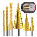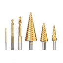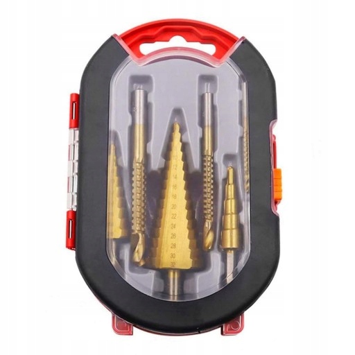 6-częściowy zestaw wierteł: Zawiera 3 sztuki wierteł stopniowych (1 sztukę wiertła 5-stopniowego o średnicy od 4 mm do 12 mm, 1 sztukę wiertła 9-stopniowego o średnicy od 4 mm do 20 mm i 1 sztukę wiertła 15-stopniowego o średnicy od 4 mm do 32 mm) oraz 3 sztuki wierteł ślimakowych (o średnicy 3 mm, 6 mm i 8 mm)