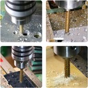 Ostre i odporne na zużycie: Te wiertła są wykonane ze stali szybkotnącej z powłoką tytanową, co ułatwia i przyspiesza ich użycie. Wiertła te są wykonane ze stali szybkotnącej i pokryte tytanem, co sprawia, że krawędzie wierteł są ostre, a korzystanie z nich jest łatwiejsze i szybsze. Powłoka tytanowa zapobiega korozji i rdzewieniu wierteł, zmniejsza tarcie i zapewnia nawet dwukrotnie dłuższą żywotność niż w przypadku standardowych wierteł udarowych.