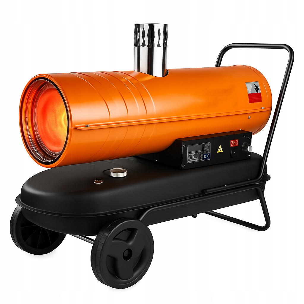 Płomień rozgrzewa wymiennik ciepła, a spaliny odprowadzane są na zewnątrz przez komin w górnej części obudowy. Energia cieplna zostaje przekazana do powietrza okalającego wymiennik i jest wydmuchiwana z nagrzewnicy w postaci jednostajnego strumienia czystego i gorącego powietrza.