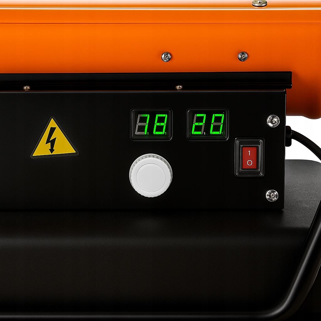 Нагреватель оснащен цифровым термостатом с плавной регулировкой температура. Он обеспечивает высокую тепловую эффективность и экономию топлива.После достижения