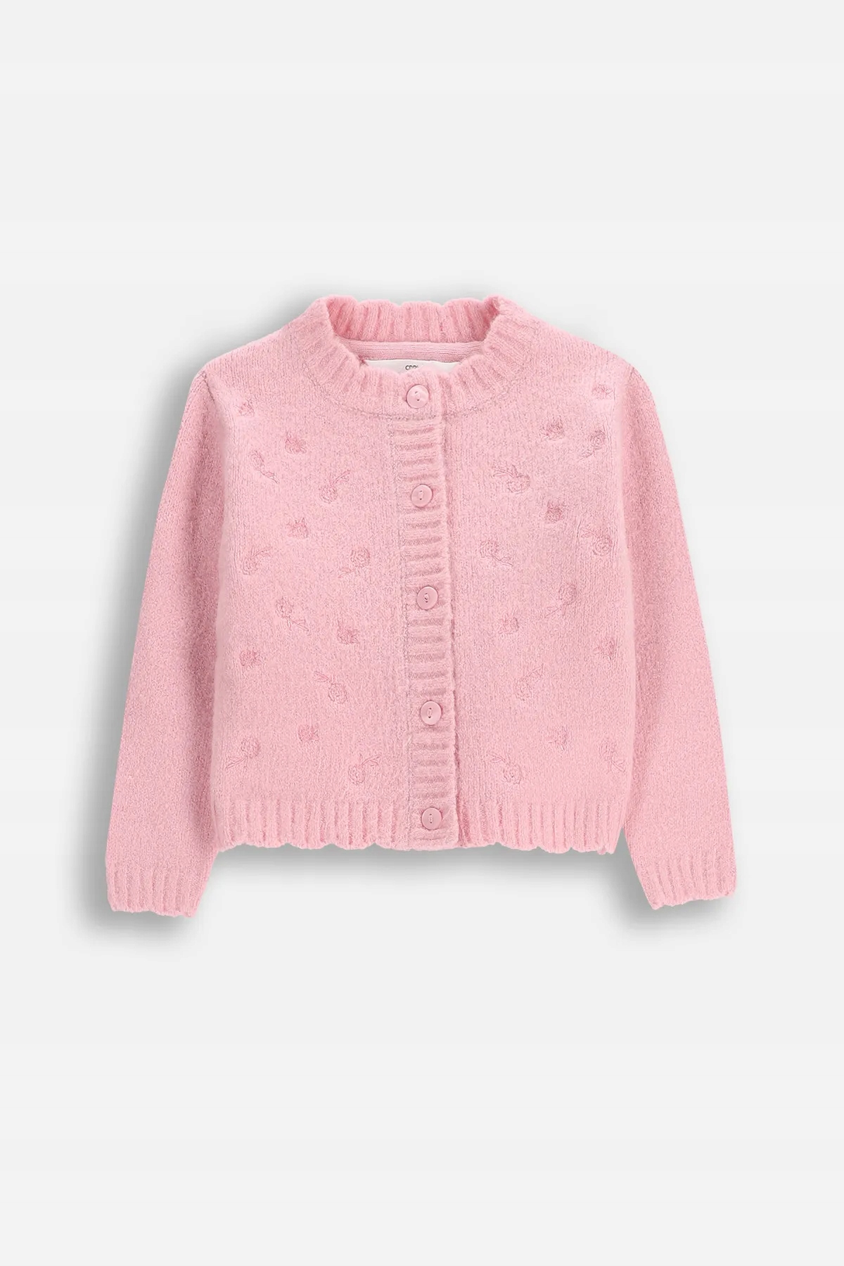 Ozdobny haft kwiatów dodaje mu wyjątkowego uroku, a długi rękaw i wygodne zapięcie na guziki sprawiają, że jest praktyczny i łatwy do zakładania. Dzięki elastycznym mankietom i wykończeniu szyi, sweterek doskonale dopasowuje się do ciała dziecka, nie krępując jego ruchów.