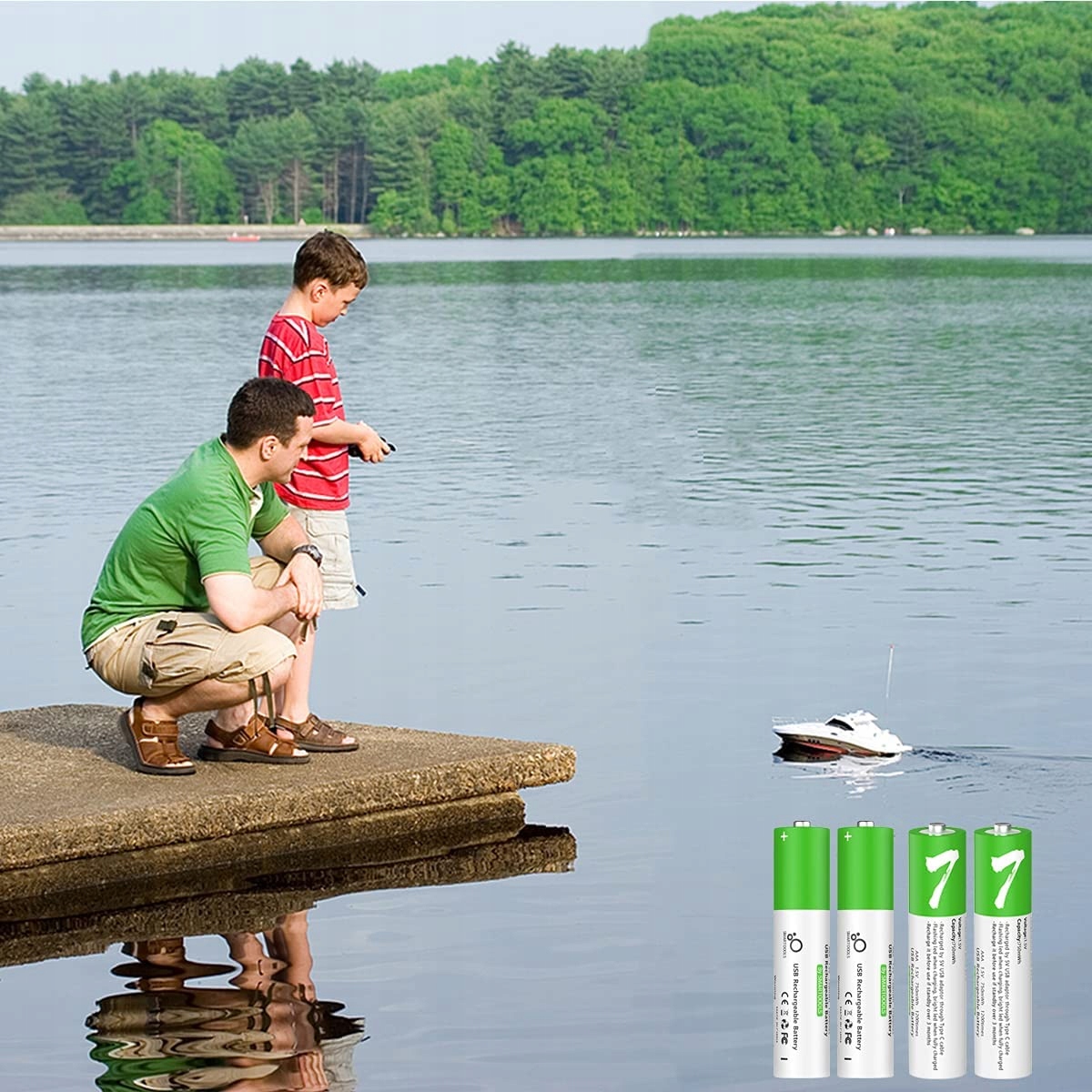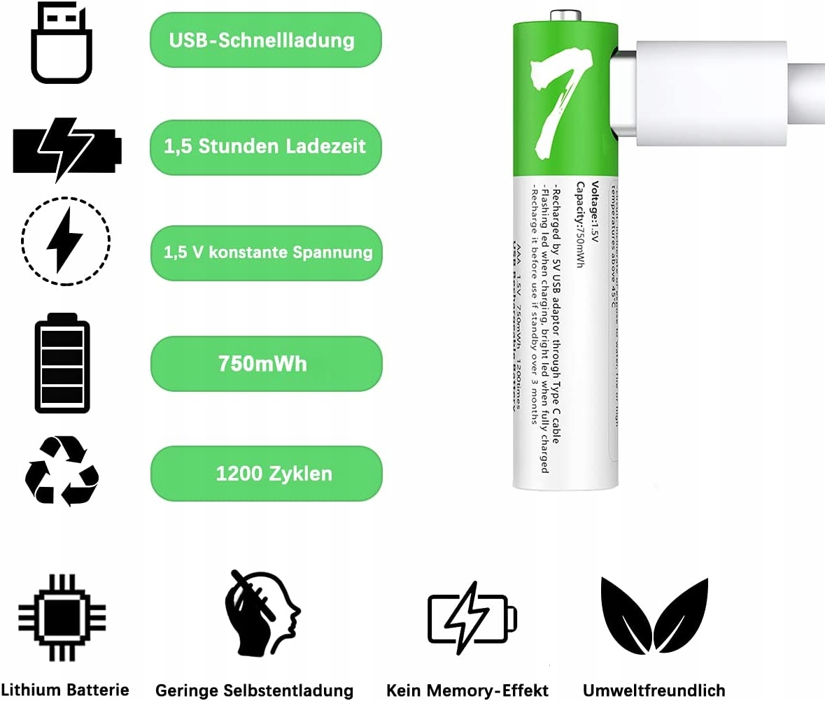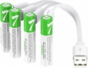 Akumulatory litowe AAA, wielokrotnego ładowania, 1,5 V, 750 mWh z kablem USB typu C 4 w 1, szybkie ładowanie w ciągu 1,5 godziny, 1200 cykli recyklingu, 4 sztuki