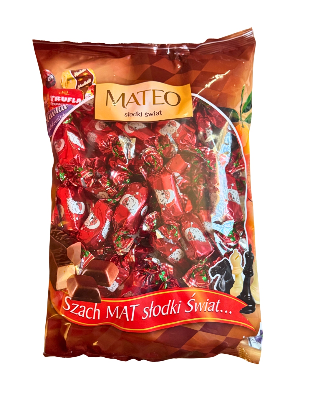 Witaj w Świątecznym Świecie Słodyczy! Jesteśmy MATEO, polska, rodzinna firma z pasją do tworzenia wyjątkowych smaków. Na zbliżające się Boże Narodzenie z dumą prezentujemy nasz bestseller: Cukierki z Mikołajem 1 kg!
