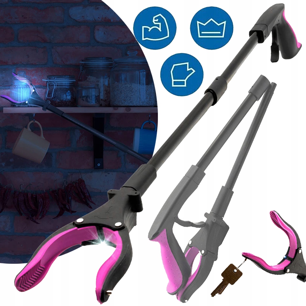 OŚWIETLENIE LED :BEZPIECZNY SPOSÓB NA Zdobycie tego, czego potrzebujesz - Nowe, innowacyjne światło LED pomaga bezpiecznie sięgnąć i podnieść przedmioty w ciemnych miejscach, gdzie z powodu ciemności może być trudno je chwycić i dosięgnąć. Koniec z chwiejnymi schodkami lub drabinami, które mogą prowadzić do upadków, nasz chwytak pozwala uzyskać wszystko, czego pragniesz, bez ryzyka wypadków. Jest niezbędny w placówkach medycznych i opiece nad osobami starszymi, aby zminimalizować obciążenie fizyczne. Narzędzie do chwytania sprzętu medycznego dla starszych artykułów gospodarstwa domowego