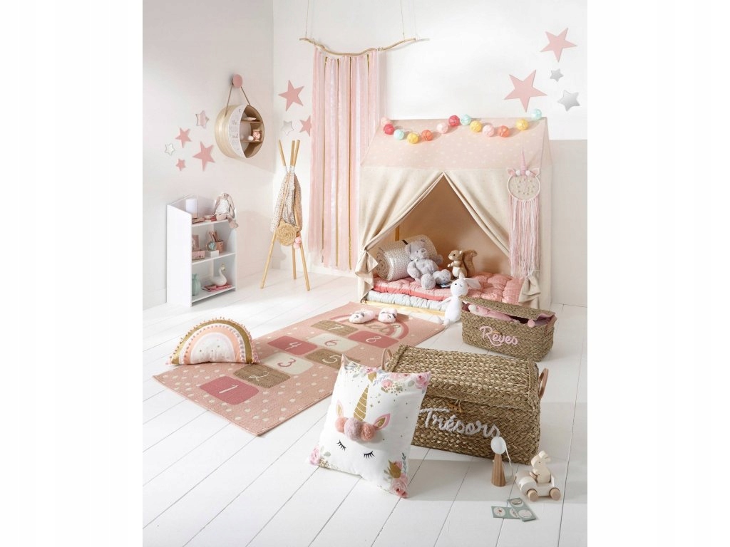 Poduszka dekoracyjna do pokoju dziecka, motyw jednorożca, 40 x 40 cm. Poduszki dekoracyjne to od jakiegoś czasu prawdziwy hit dizajnu pokojów dziecięcych i młodzieżowych. Francuska marka Atmosphera w kolekcji For Kids oferuje szeroki wybór miłych w dotyku i ślicznych poduszek dekoracyjnych w wielu ciekawych kształtach. Można umieścić je w łóżeczku, fotelu lub na innym meblu. Poduszka szybko stanie się ulubioną przytulanką dziecka, stanowiąc przy tym uroczą dekorację. Poduszka dekoracyjna nie posiada twardego zamka błyskawicznego, więc bez problemu może spełniać funkcję maskotki i być pomocnikiem przy zasypianiu.