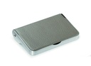 Skórzane etui na karty z klapką na zawiasach, dzięki czemu może służyć jako podręczny stojak na telefon lub tablet. Posiada zabezpieczenie RFID.