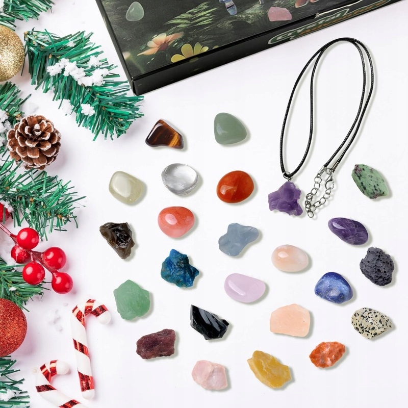 Zestaw jest zaprojektowany w formie pudełka adwentowego z 24 kratkami. Idealny do odliczania dni do świąt (np. Bożego Narodzenia) lub po prostu jako ekscytujące odkrywanie przez 24 dni. Każdego dnia nowe przygody i nowy kamień do odkrycia!